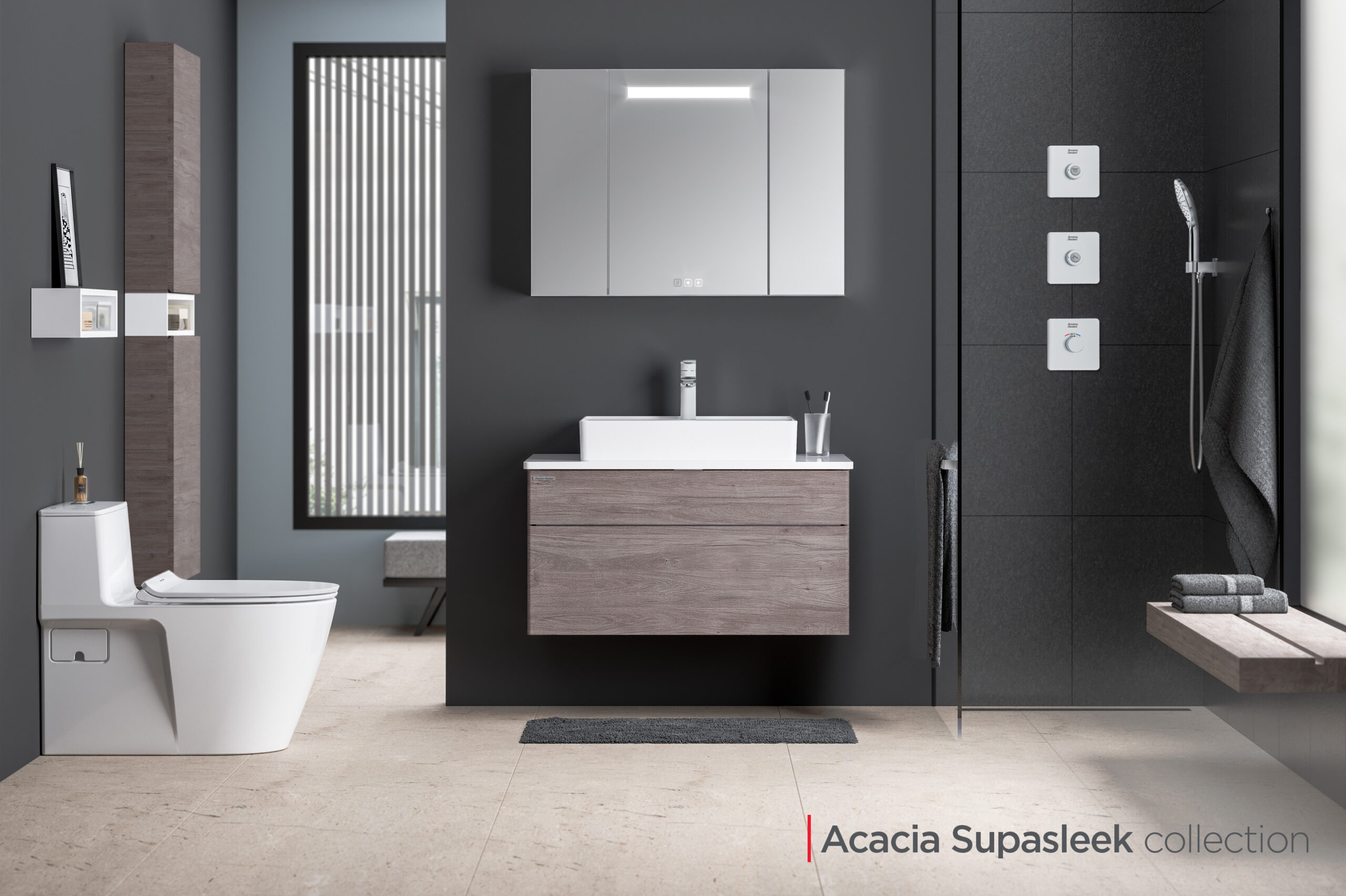 • Acacia Supasleek Collection: ด้วยดีไซน์ที่เพรียวบางและทันสมัย ช่วยเพิ่มพื้นที่ใช้สอยให้เกิดประโยชน์สูงสุด พร้อมมอบประสบการณ์การใช้ห้องน้ำที่หรูหราและสะดวกสบาย
