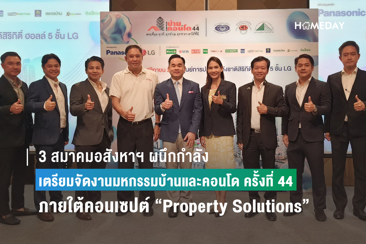 สามสมาคมอสังหาฯ เจ้าภาพงานหกรรมบ้านและคอนโด เล็งขยายฐานลูกค้าเดินงานฯ จับกลุ่มผู้ซื้อพร้อมกัน 3 เจน เพิ่มโอกาสขายให้สมาชิกผู้ประกอบการ และถือเป็นโอกาสทองให้คนไทยมีบ้านได้ง่าย โดยงานครั้งที่ 44 นี้ ชูคอนเซปต์ Property Solutions ระดมทุกภาคส่วนจากวงจรธุรกิจอสังหาฯ มาไว้ในงาน เพื่อตอบทุกโจทย์เรื่องบ้าน