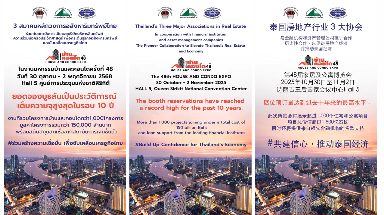 3 สมาคมอสังหาฯ ชงมาตรการยาแรง”Quick Win”ยกเว้นค่าโอนจดจำนองทุกระดับราคาถึงสิ้นปีนี้กระตุ้นตลาดปลายปี เผยงานมหกรรมบ้านและคอนโดครั้งที่ 48 ยอดจองบูธล้นเในรอบ 10 ปี - Homeday Space | HOMEDAY