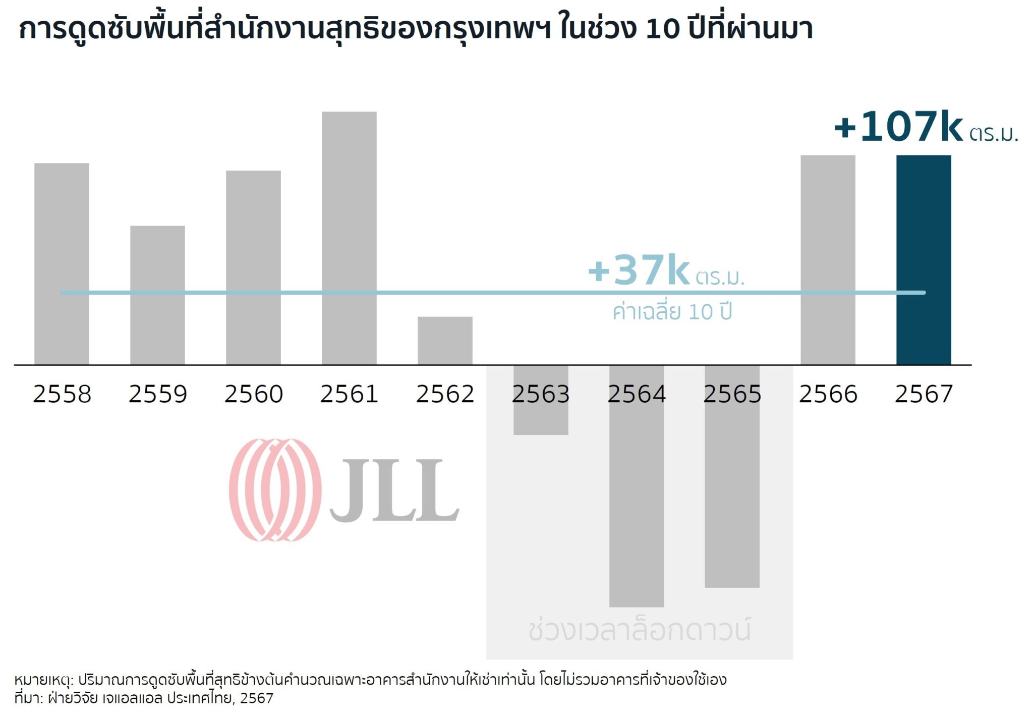 ตลอดกว่า 200 ปีที่ผ่านมา เจแอลแอล (JLL) ซึ่งเป็นหนึ่งในบริษัทที่ปรึกษาและบริการด้านอสังหาริมทรัพย์ชั้นนำของโลก ได้ให้ความช่วยเหลือแก่ลูกค้าในด้านการซื้อ ขาย เช่า สร้าง บริหารจัดการ และลงทุนสำหรับอสังหาริมทรัพย์หลากหลายประเภท ไม่ว่าจะเป็น สำนักงาน โรงงาน โกดัง โรงแรม ที่อยู่อาศัย หรือศูนย์การค้า เจแอลแอล ได้รับการจัดอันดับโดยนิตยสารฟอร์จูนให้อยู่ในกลุ่มบริษัทชั้นนำ 500 บริษัท โดยในปีที่ผ่านมามีรายได้ทั่วโลกรวมทั้งสิ้น 28,000 ล้านดอลลาร์สหรัฐ ปัจจุบันดำเนินธุรกิจในกว่า 80 ประเทศทั่วโลก พนักงานของเราทั่วโลกรวมกว่า 110,000 คน ผสมผสานแพลตฟอร์มการให้บริการระดับโลกของบริษัทเข้ากับความเชี่ยวชำนาญของทีมงานในระดับประเทศ เราเป็นองค์กรที่ถูกขับเคลื่อนด้วยจุดประสงค์ที่ต้องการกำหนดอนาคตอสังหาริมทรัพย์เพื่อโลกที่ดีกว่า เราช่วยให้ลูกค้า พนักงาน และชุมชนของเราพบกับวิถีใหม่ที่สดใสกว่าที่เคย (SEE A BRIGHTER WAYSM) เจแอลแอล เป็นชื่อแบรนด์และเครื่องหมายการค้าของ Jones Lang LaSalle Incorporated ศึกษาข้อมูลเพิ่มเติมได้ที่ jll.co.th