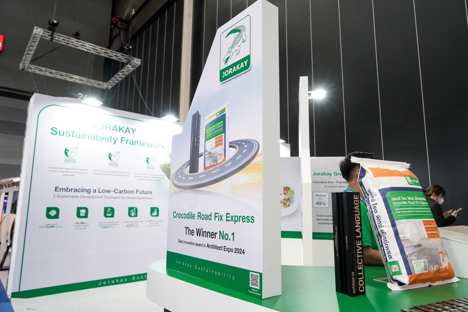 จระเข้ได้นำผลิตภัณฑ์ในกลุ่มเคมีก่อสร้างตัวใหม่ล่าสุด Crocodile Road Fix Express มอร์ตาร์สำหรับซ่อมพื้นผิวถนนคอนกรีตชนิดบาง ยังคว้ารางวัล “นวัตกรรมลดโลกร้อน” (Best Innovativeness Green Product) โดยมี ดร.สราวุธ แก้วตาทิพย์ อธิบดีกรมธุรกิจพลังงาน เป็นผู้มอบรางวัล นับเป็นรางวัลที่ 2 สำหรับนวัตกรรมรักษ์โลกใหม่ล่าสุดของจระเข้ หลังจากเคยได้รางวัลชนะเลิศจากเวที Best Innovation Award 2024 ในงานสถาปนิก’67 ด้วยจุดเด่นเปิดใช้งานพื้นที่ได้ไวภายใน 6 ชั่วโมง พร้อมลดปริมาณการปล่อยก๊าซคาร์บอนไดออกไซด์ได้ถึง 97%