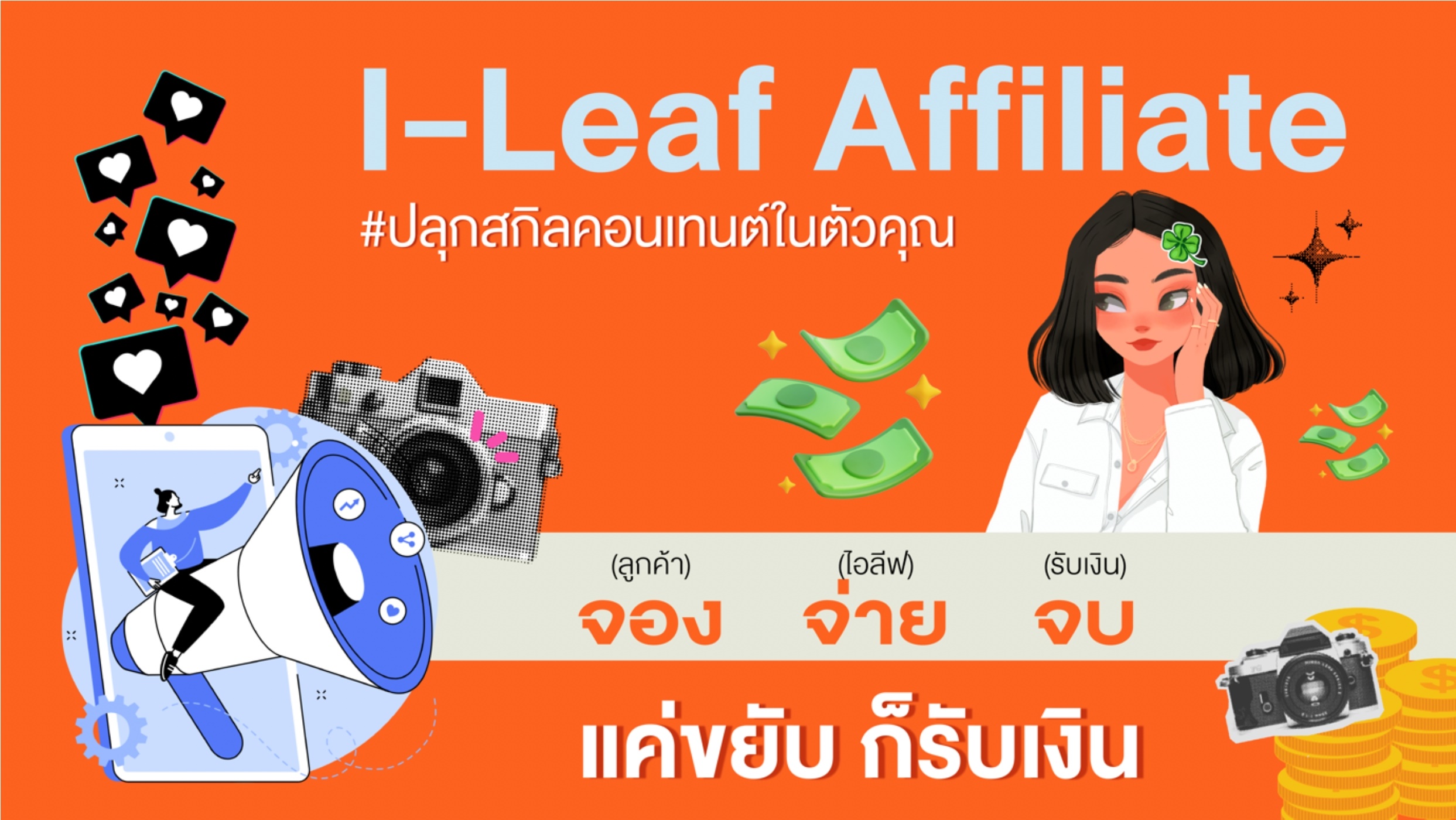 ล่าสุดบริษัท กานดา พร็อพเพอร์ตี้ จำกัด ผู้พัฒนาโครงการบ้าน I-Leaf เปิดตัวแคมเปญใหม่ I-Leaf Affiliate แค่ขยับก็รับเงิน #ปลุกสกิลคอนเทนต์ในตัวคุณ เชิญชวนครีเอเตอร์สายรีวิวร่วมสร้างสรรค์คอนเทนต์บ้าน I-Leaf ในหลากหลายทำเล โดยเชื่อมั่นว่า เหล่าครีเอเตอร์จะสามารถสร้างสรรค์สื่อที่ช่วยบอกต่อสินค้าได้อย่างมีประสิทธิภาพ และสร้างรายได้จากค่าตอบแทนจากผลงานให้กับครีเอเตอร์ที่เข้าร่วมแคมเปญนี้