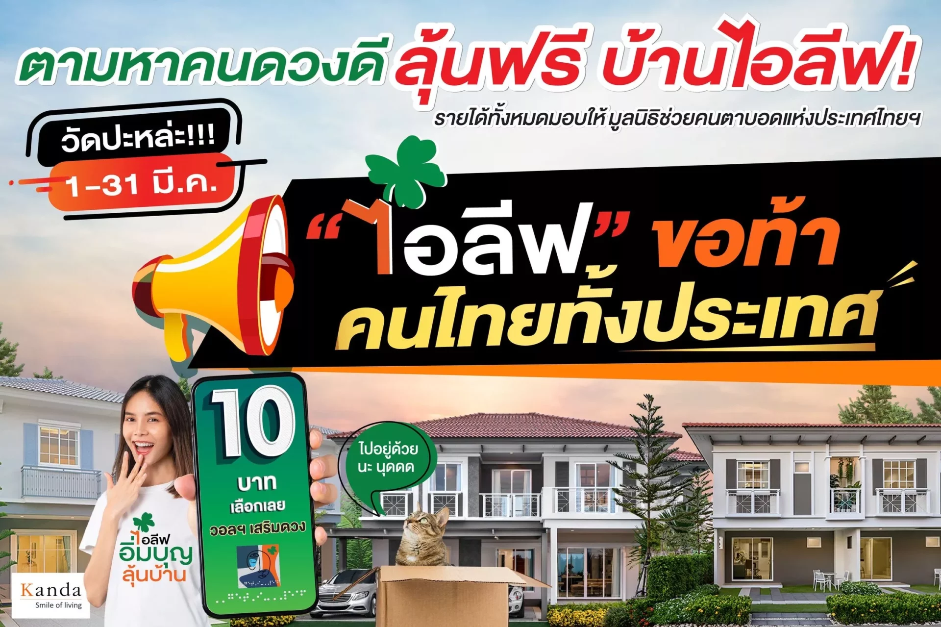 กานดา พร็อพเพอร์ตี้ กางแผนลงทุนปี 66 ลุยเปิด 5 โครงการใหม่ภายใต้แบรนด์ “ไอลีฟ” มูลค่ารวม 5,000 ล้านบาท เตรียมปักธงทำเลใหม่ รามอินทรา-คู้บอน รับรถไฟฟ้าสายสีชมพู ตั้งเป้ายอดขายรวม 3,500 ล้าน รายได้ 2,500 ล้าน พร้อมเดินหน้าพัฒนาโครงการเพื่อความยั่งยืนและเท่าเทียม ล่าสุดเปิดตัวแคมเปญ CSR “ไอลีฟ อิ่มบุญลุ้นบ้าน” ร่วมโอนเงินขั้นต่ำ 10 บาท รับวอลเปเปอร์เสริมดวง รายได้ทั้งหมดมอบให้มูลนิธิช่วยคนตาบอดแห่งประเทศไทยฯ แถมได้สิทธิ์ลุ้นบ้านฟรีมูลค่า 2.24 ล้านบาท