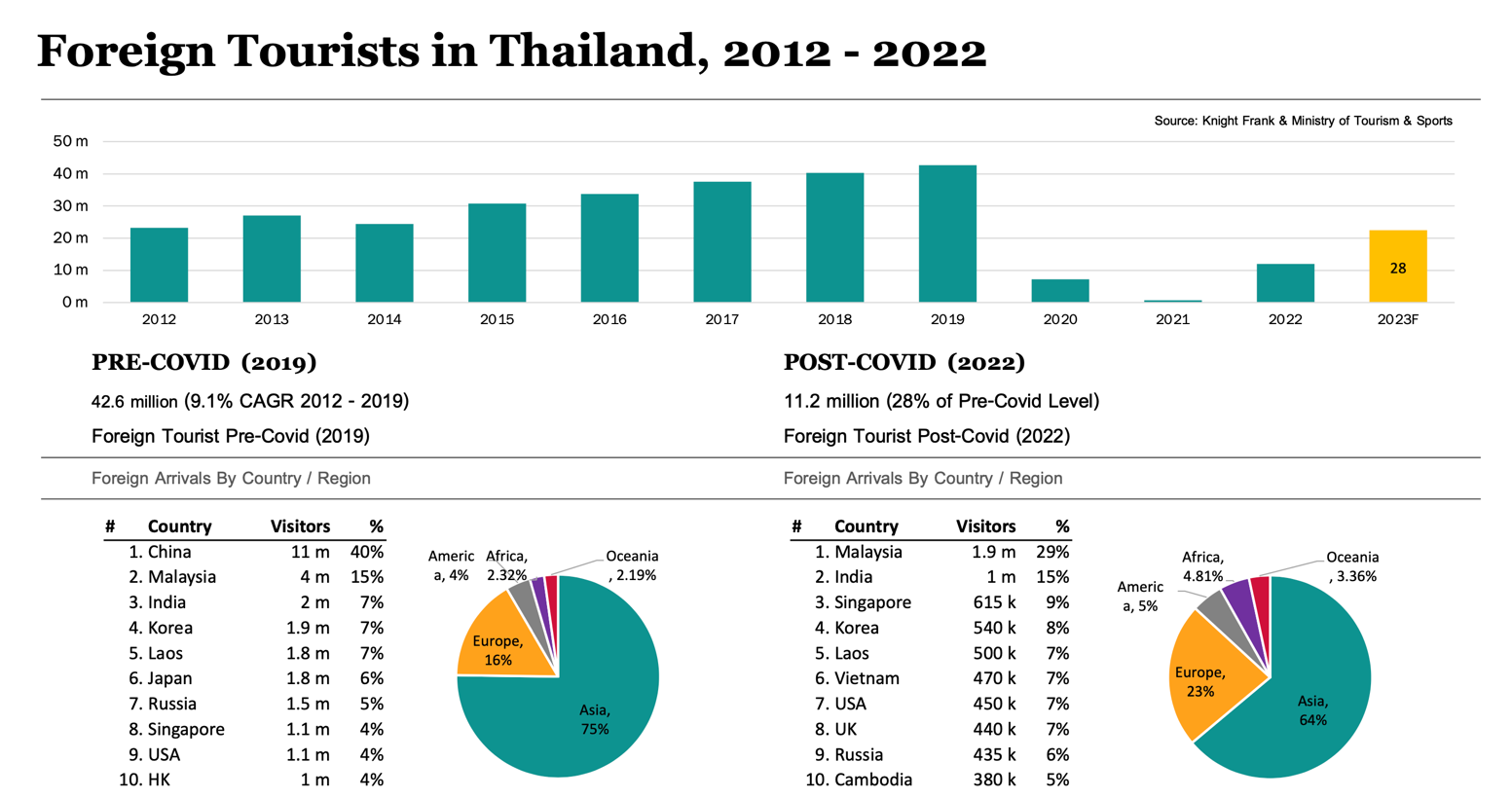ไนท์แฟรงค์ ประเทศไทย จัดงาน “Knight Frank Foresight 2023 It’s Time to Look Beyond the Crisis” เจาะลึกภาพรวมตลาดและแนวโน้มอสังหาริมทรัพย์ไทย ในช่วงไตรมาสที่ 4 ของปี 2565 ต่อเนื่องถึงไตรมาสแรกของปี 2566 ฟื้นตัวต่อเนื่อง เผยสัญญาณบวกจากกำลังซื้อระดับบน ดันตลาดบ้านหรู กรุงเทพฯ และปริมณฑล ยอดขายโต 19,476 ยูนิต จับตาวิลล่าและคอนโดฯ ภูเก็ตร้อนแรงจากกลุ่มลูกค้ารัสเซียและจีน ด้านตลาดโรงแรมผ่านจุดต่ำสุดเริ่มขยับพร้อมรับมือตลาดไมซ์