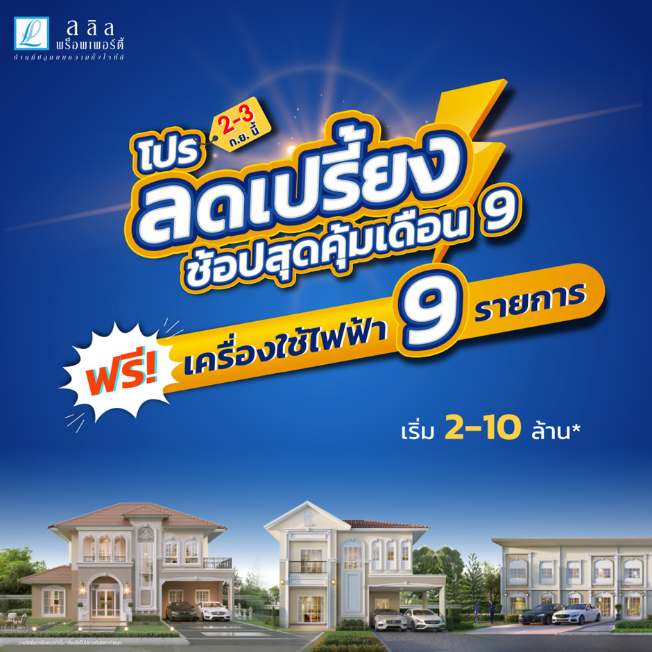 บริษัท ลลิล พร็อพเพอร์ตี้ จำกัด (มหาชน) หรือ (LALIN) ผู้พัฒนาโครงการอสังหาริมทรัพย์คุณภาพภายใต้คอนเซ็ปต์ ‘บ้านที่ปลูกบนความตั้งใจที่ดี’ มอบความคุ้มกับโปรพิเศษ “ลดเปรี้ยง ช้อปสุดคุ้มเดือน 9” รับเลย 3 ฟรี! แบบสุดคุ้ม (ฟรีที่ 1) กับเฟอร์นิเจอร์แบบครบๆ จบทั้งหลัง (ฟรีที่ 2) คุณซื้อเราโอน ตบท้ายด้วย (ฟรีที่ 3) กับเครื่องใช้ไฟฟ้าแบรนด์ดังมากถึง 9 รายการ รวมมูลค่ากว่า 300,000 บาท เมื่อซื้อบ้านคุณภาพของ ลลิล พร็อพเพอร์ตี้ ที่คัดสรรมาให้เลือกทั้งบ้านเดี่ยว ทาวน์โฮม และบ้านแนวคิดใหม่ ทุกระดับราคาตั้งแต่ 2-10 ล้านบาท ทั้งในกรุงเทพฯ ปริมณฑล และต่างจังหวัด จากแบรนด์ต่างๆ ในเครือ ประกอบด้วย แลนซีโอ, ไลโอ, บ้านลลิล และลลิล กรีนวิลล์ ที่ออกแบบและพัฒนาอย่างปราณีตพิถีพิถันด้วยแนวคิด Sustainable architecture หรือ สถาปัตยกรรมที่ยั่งยืน เพื่อลดผลกระทบต่อสิ่งแวดล้อม สร้างคุณภาพชีวิตและสังคมที่ดีแก่ลูกบ้าน โดดเด่นด้วยกลิ่นอายแห่งดีไซน์ของสถาปัตยกรรมฝรั่งเศสแบบ French Colonial Style พร้อมฟังก์ชันตอบโจทย์ไลฟ์สไตล์ยุคใหม่ ผสานแนวคิดบ้านนวัตกรรม iL- Lalin Innovation for Living เพื่อสร้างมาตรฐานใหม่แห่งการอยู่อาศัยที่สมบูรณ์แบบ