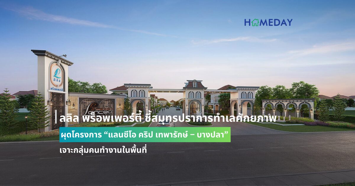 ลลิล พร็อพเพอร์ตี้ ชี้สมุทรปราการเป็นหนึ่งในทำเลศักยภาพ ล่าสุดทุ่มงบ 840 ล้าน เปิดตัวโครงการใหม่ “แลนซีโอ คริป เทพารักษ์ – บางปลา” บ้านเดี่ยวและบ้านแฝดสไตล์ฝรั่งเศส ใกล้เมกา บางนา เมืองใหม่บางพลี ราคาเริ่มต้น 3.89 ล้านบาท เจาะกลุ่มคนทำงานรายได้ปานกลาง-สูงในพื้นที่ เผยเปิดเฟสแรกผลตอบรับดี จ่อเปิดต่อเฟส 2 ต่อ