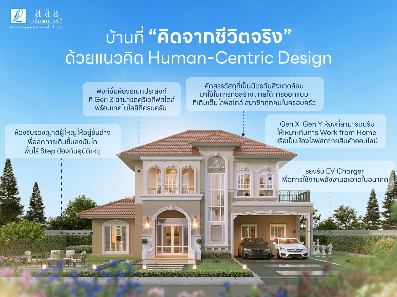 “ลลิล พร็อพเพอร์ตี้” ตอกย้ำความเป็นผู้นำด้านการพัฒนาโครงการแนวราบในกลุ่มตลาด Real Demand ของไทย ด้วยวิสัยทัศน์ “บ้านที่คิดมาจากชีวิตจริง” มุ่งสร้างสรรค์ที่อยู่อาศัยที่เข้าใจผู้คนอย่างแท้จริง ผ่านแนวคิด Human-Centric Design หรือ “การออกแบบโดยยึดผู้อยู่อาศัยเป็นศูนย์กลาง” ซึ่งสะท้อนถึงปรัชญาการออกแบบ ที่เริ่มต้นจาก “ชีวิตจริง” ของผู้คน มากกว่าการเริ่มต้นจากแบบแปลนหรือโครงสร้างเพื่อให้บ้านทุกหลังสามารถตอบโจทย์วิถีชีวิตในทุกช่วงวัยได้อย่างลงตัว