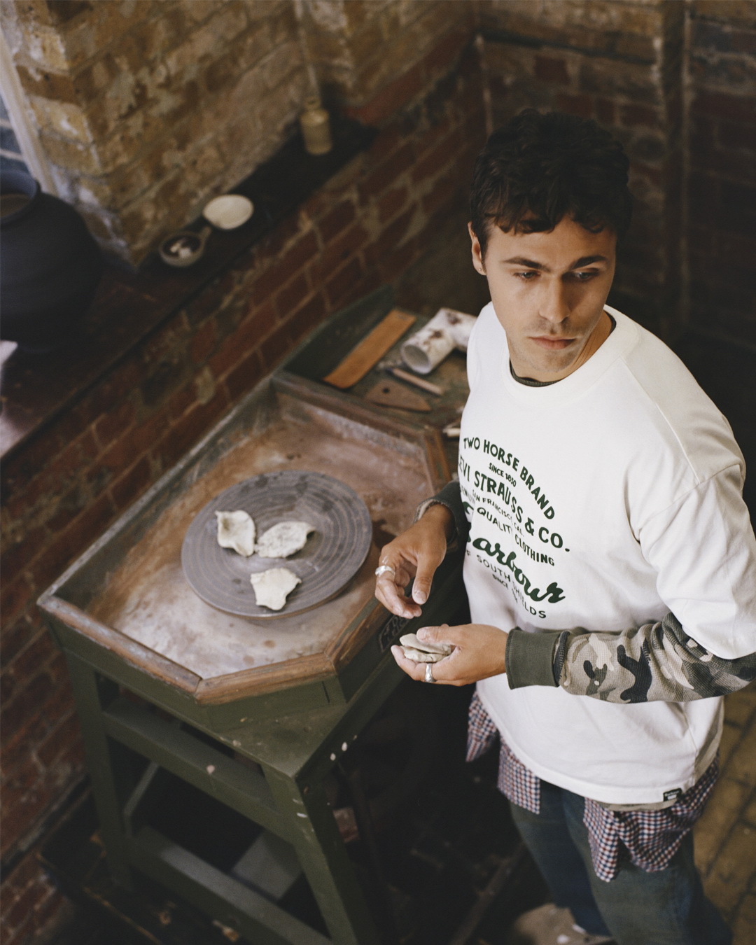 แคมเปญของคอลเลกชันนี้คือการเฉลิมฉลองความเชี่ยวชาญอย่างแท้จริง นั่นคือความทุ่มเทอย่างเงียบๆ ที่อยู่เบื้องหลังทุกฝีเข็ม จนกลายเป็นความชำนาญขั้นต้นแบบ ถูกถ่ายทอดผ่านเลนส์ของ Tbone Fletcher ช่างภาพและผู้กำกับที่มองงานคราฟต์เหมือนจังหวะของลมหายใจ ไม่เร่ง ไม่เน้นการโพส แต่ยอมให้เนื้อผ้า ร่องรอย และมือของผู้ทำงาน เป็นตัวเล่าเรื่อง Styling โดย Tirino Yspol ถูกออกแบบให้ไม่รู้สึกเหมือน “แฟชั่นโชว์” แต่เหมือน โมเมนต์ที่ช่างไม้ ช่างปั้น หรือผู้สร้างงานเปิดประตูเวิร์กช็อป และปล่อยให้ใครบางคนถ่ายภาพไว้โดยไม่ปรุงแต่ง ในแคมเปญนี้ ตัวละครไม่ใช่นางแบบหรือนายแบบ แต่คือ ผู้สร้างงานจริง (real makers) ได้แก่ Shivas Howard Brown ผู้ก่อตั้ง Friendly Pressure ที่ทำลำโพง bespoke ด้วยมือ, Lev Rosenbush ดีไซเนอร์เซรามิก, Andu Masebo ช่างทำเฟอร์นิเจอร์ และ Ellie Mercer ช่างทำจิวเวลรี่ คอลเลกชันนี้เชิดชูมรดกอันยาวนานของงานฝีมือ ความยืดหยุ่น และความทุ่มเทที่ Levi’s® และ Barbour ได้สืบทอดมาหลายชั่วอายุคน พร้อมกับยกย่องช่างฝีมือสมัยใหม่ที่กำลังสร้างมรดกใหม่ๆ ให้กับอนาคต