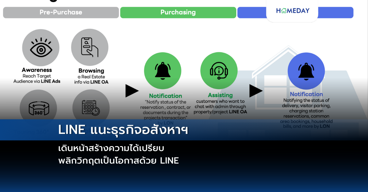 ในยุคที่เทคโนโลยีกลายเป็นปัจจัยสำคัญขับเคลื่อนธุรกิจ การพัฒนาและปรับตัวเพื่อใช้ประโยชน์จากแพลตฟอร์มดิจิทัลเป็นสิ่งที่ธุรกิจอสังหาริมทรัพย์ไม่ควรมองข้าม โดยเฉพาะในช่วงเวลาที่ตลาดต้องเผชิญกับความท้าทายและวิกฤตต่างๆ ผู้ประกอบการที่สามารถใช้เทคโนโลยีอย่างมีประสิทธิภาพจะเป็นผู้ได้เปรียบในตลาดมากที่สุด LINE ตระหนักถึงการสร้างความได้เปรียบนี้ จึงจัดสัมมนาย่อย “Making LINE a Home for Real Estate” เปิดข้อมูลการใช้ประโยชน์จากเทคโนโลยี LINE โดยมีผู้เชี่ยวชาญจาก LINE ประเทศไทย อัพเดทเทรนด์ธุรกิจตลาดอสังหาฯ ที่น่าสนใจ แนะนำเครื่องมือสำคัญที่สามารถช่วยให้ธุรกิจอสังหาฯ พลิกวิกฤตเป็นโอกาส สร้างความได้เปรียบในการแข่งขัน และขับเคลื่อนธุรกิจให้ก้าวไปข้างหน้าอย่างมั่นใจ