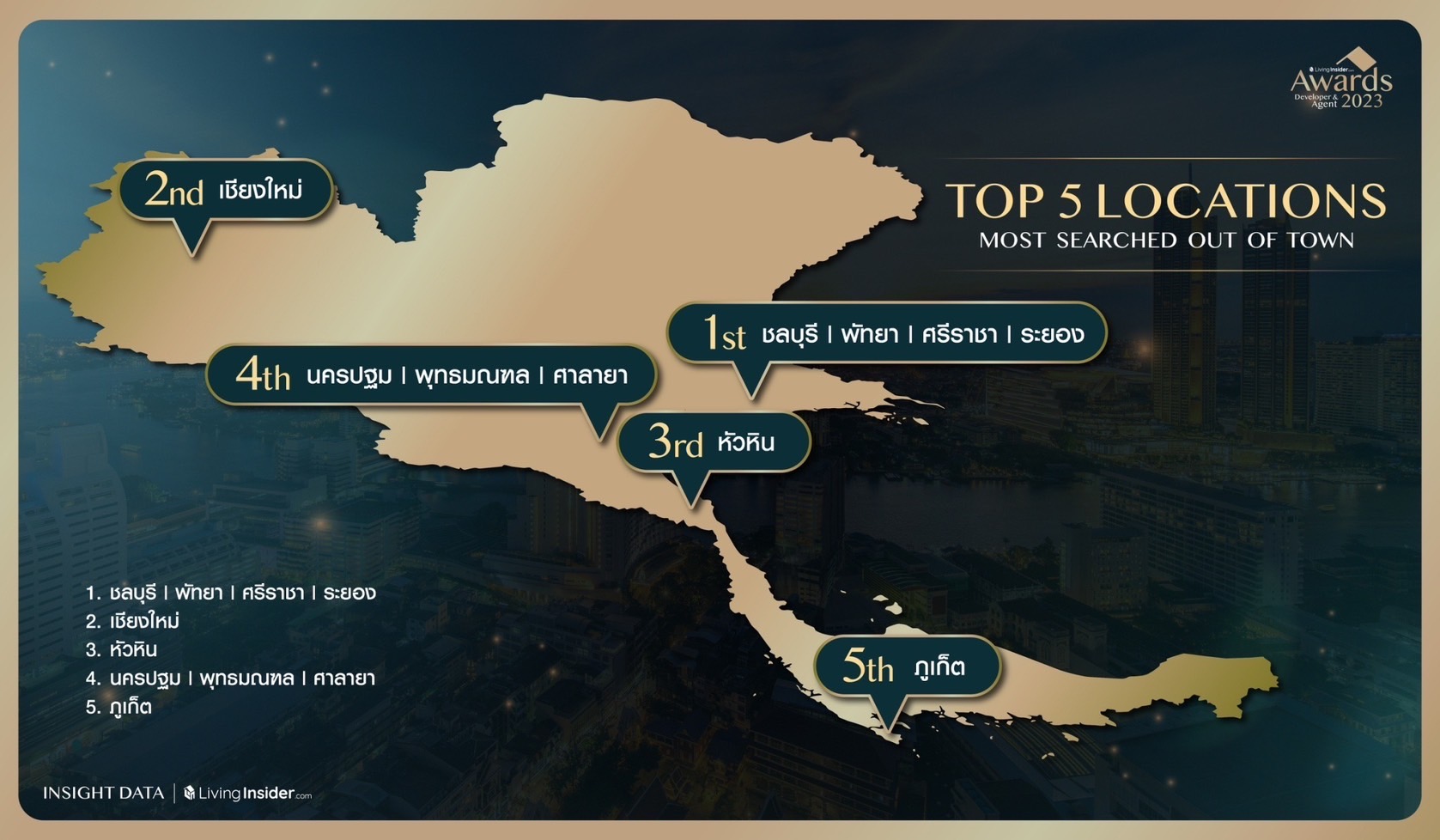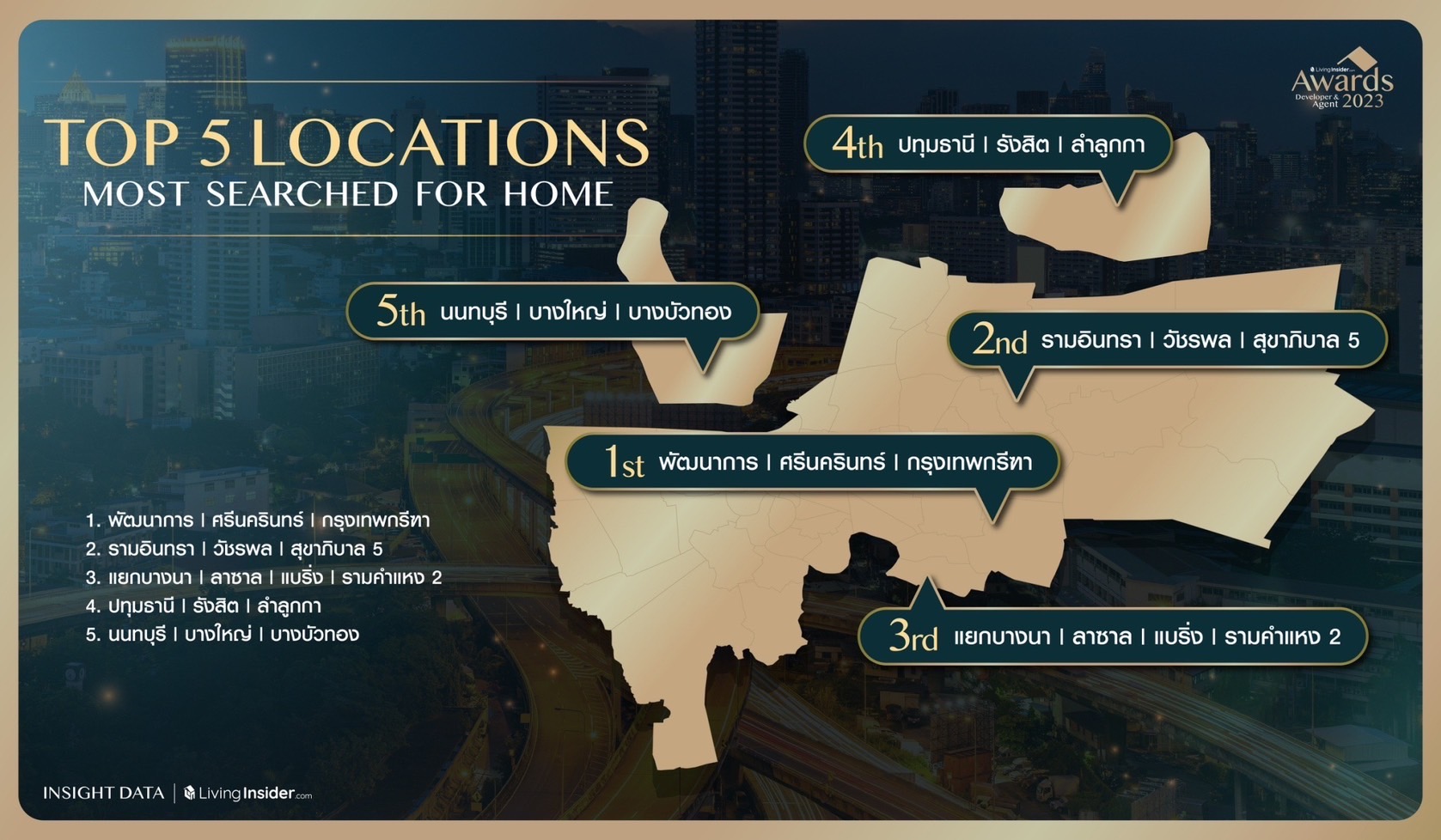 โดยเมื่อเจาะลึกรายละเอียดลงไป พฤติกรรมผู้บริโภคมีความสนใจทำเลมากขึ้น เมื่อดูข้อมูลแล้วพบว่า ทำเลที่มี การค้นหาบ้านมากที่สุด ได้แก่ พัฒนาการ ศรีนครินทร์ กรุงเทพกรีฑา ส่วนทำเลที่มีการค้นหาคอนโดมากที่สุด ได้แก่ ทำเล สุขุมวิทตอนกลาง-อโศก ทองหล่อ เอกมัย ในด้านของภาพรวมต่างจังหวัด ทำเลที่มีการค้นหามากที่สุด ได้แก่ ชลบุรี พัทยา ศรีราชา และระยอง