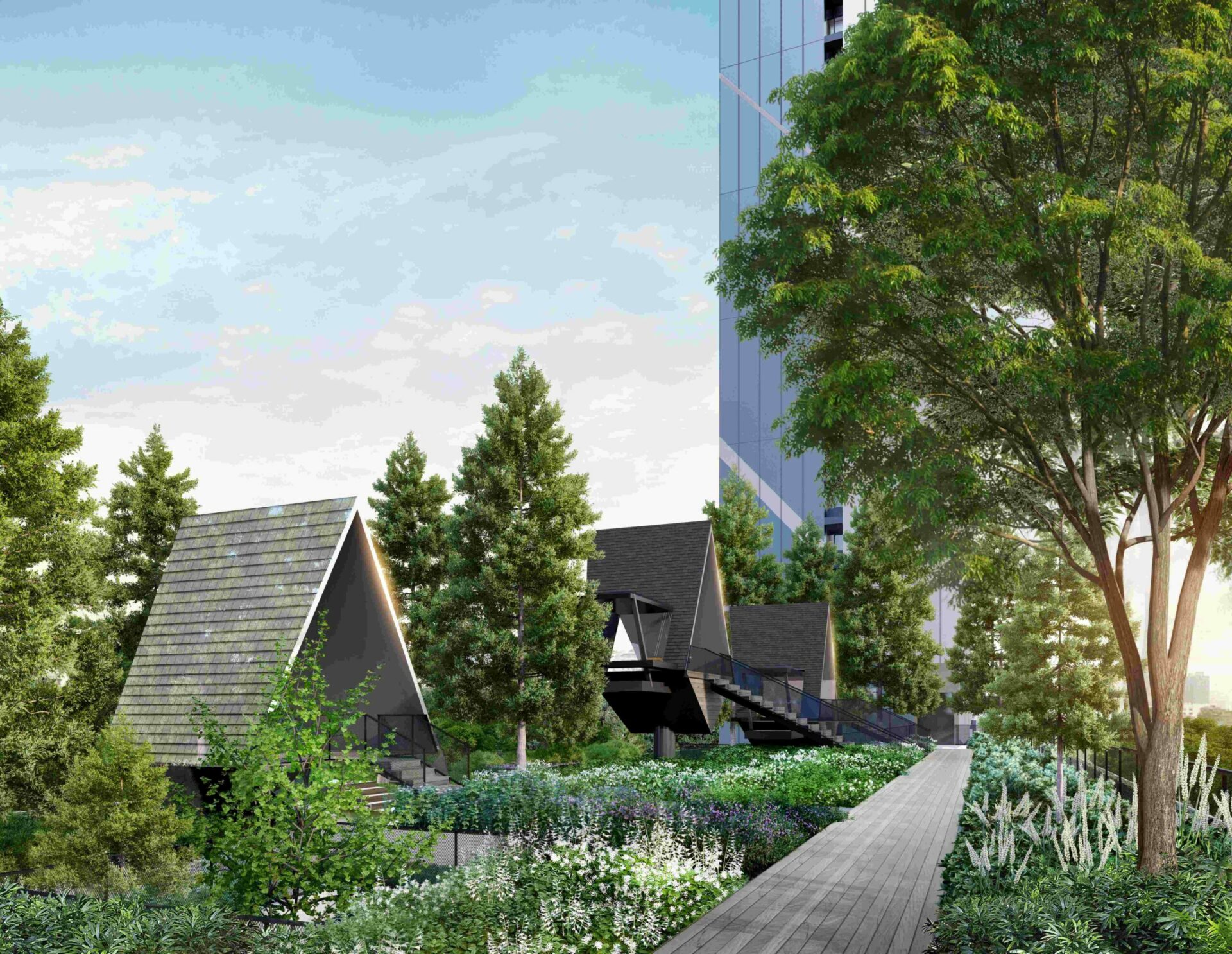 ในส่วนของการออกแบบพื้นที่ส่วนกลางของโครงการยังตอบโจทย์การใช้ชีวิตอย่างลงตัว ทั้ง Lobby ขนาดใหญ่แยกส่วนในแต่ละอาคาร จึงทำให้สามารถพาเพื่อนมาทำกิจกรรมได้โดยไม่รบกวนความเป็นส่วนตัวของผู้พักอาศัย และพื้นที่กิจกรรมเพื่อสุขภาพขนาดใหญ่ ทั้ง Urban Roof Forest Park, The Spiral Treetop Passage, Observation Circular Tree House, Gathering Leisure Lounge, Outdoor Skate Garden, Cabin Playground พื้นที่กิจกรรมสำหรับครอบครัว, The Gym, Semi Outdoor Yoga และ Blue Lagoon Wellness Pool ที่มีความยาวถึง 30 เมตร และอื่นๆ อีกมากมาย เพื่อให้เป็นที่พักอาศัยที่ตอบโจทย์ความต้องการในเรื่อง Well-being หรือการมีสุขภาวะกาย และใจที่ดี รวมไปถึงสุขภาวะทางสังคมและสิ่งแวดล้อม ผสานด้วยเทคโนโลยีที่ดีไซน์เพื่อการใช้ชีวิตให้ง่ายขึ้นอย่างลงตัว อาทิ IoT พร้อม Wifi ฟรี 1 ปีแรก จุดจอดรถแบบ EV Charger และไร้กังวลกับระบบรักษาความปลอดภัยแบบ Privacy System