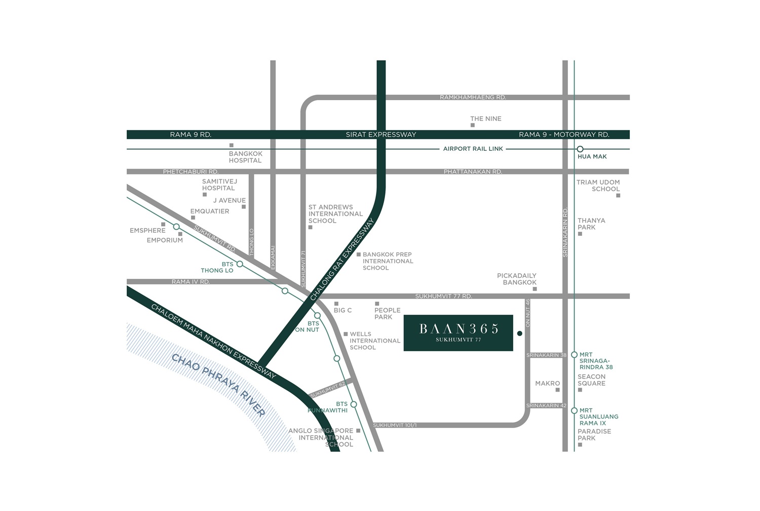 สำหรับ โครงการ BAAN 365 SUKHUMVIT 77 เป็นโครงการบ้านเดี่ยวระดับพรีเมียม ตั้งอยู่บนถนนสุขุมวิท 77 (อ่อนนุช 46) บนที่ดินประมาณ 9 ไร่ พื้นที่ดินขนาดเริ่มต้น 50-70 ตร.ว. พื้นที่ใช้สอยเริ่มต้น 331-493 ตร.ม. มูลค่าโครงการรวม 1,250 ล้านบาท ให้ความเป็นส่วนตัวเพียง 38 หลัง ราคาเริ่มต้น 28 ล้านบาท มีแบบบ้านให้เลือก 3 แบบ