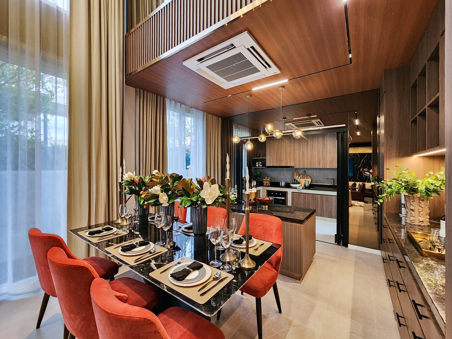 โดยหัวใจหลักของการออกแบบ โครงการ BAAN 365 SUKHUMVIT 77 จะให้ความสำคัญเริ่มจากการทำความเข้าใจวิถีชีวิตของผู้คนในปัจจุบัน ไม่ว่าจะเป็นไลฟ์สไตล์การอยู่อาศัย การใช้เวลาบนพื้นที่ส่วนตัวของแต่ละคนภายในบ้าน ดังนั้น ที่นี่จึงเน้นการออกแบบบ้านให้รู้สึกถึงความโปร่ง สว่าง และลื่นไหล เพื่อให้ทุกก้าวเดินของผู้อาศัยได้รู้สึกผ่อนคลาย และได้สัมผัสได้ถึงความสงบอย่างเป็นธรรมชาติ ทั้งการจัดวางฟังก์ชันสำคัญ เช่น โถง บันได ครัว ห้องน้ำ ไว้ในโซนเดียวกันทั้งหมด เพื่อลดความรบกวนต่อพื้นที่อยู่อาศัย และปล่อยให้ห้องนั่งเล่น ห้องกินข้าว และพื้นที่ใช้ชีวิตเชื่อมต่อเนื่องกันแบบ Open Space และสามารถปรับเปลี่ยนการใช้งานได้ตามวิถีของครอบครัว เช่น การวางโต๊ะอาหารขนาดใหญ่ 8-10 ที่นั่ง หรือโซฟาหลายที่นั่งได้อย่างไม่อึดอัด อีกทั้งยังดูมีความเรียบง่ายแต่แฝงไปความรู้สึกที่ว่าไม่ว่าจะผ่านไปกี่ยุคกี่สมัยบ้านก็ยังคงมีความ Timeless