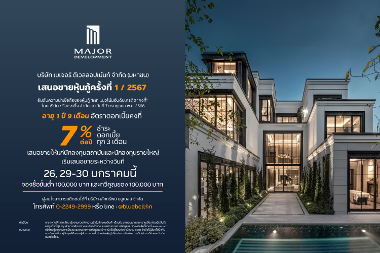 บริษัท เมเจอร์ ดีเวลลอปเม้นท์ จำกัด (มหาชน) ผู้นำด้านการพัฒนาธุรกิจอสังหาริมทรัพย์ระดับลักชูรีและคอนโดมิเนียมเลี้ยงสัตว์ได้ (Pet Family Residences) วางแผนกลยุทธ์การตลาด ลุยโครงการอสังหาริมทรัพย์แนวราบครึ่งปีหลัง ย้ำแนวคิด Crafting Lifescape to Excellence รังสรรค์คุณค่าใหม่แห่งการใช้ชีวิต พร้อมส่งแบ