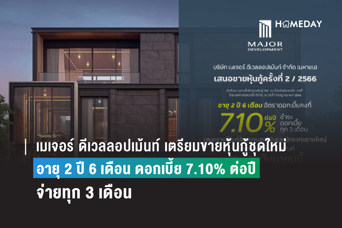 บริษัท เมเจอร์ ดีเวลลอปเม้นท์ จำกัด (มหาชน) ผู้นำด้านการพัฒนาธุรกิจอสังหาริมทรัพย์ระดับลักชูรีและคอนโดมิเนียมเลี้ยงสัตว์ได้ (Pet Family Residences) เดินหน้าพัฒนาโครงการอสังหาริมทรัพย์ภายใต้กลยุทธ์การตลาด Diversify Revenue เพื่อเสริมความแข็งแกร่งพอร์ตแนวราบ เตรียมเปิดโครงการไพรเวท ลักชูรี ทาวน์โฮมแบร