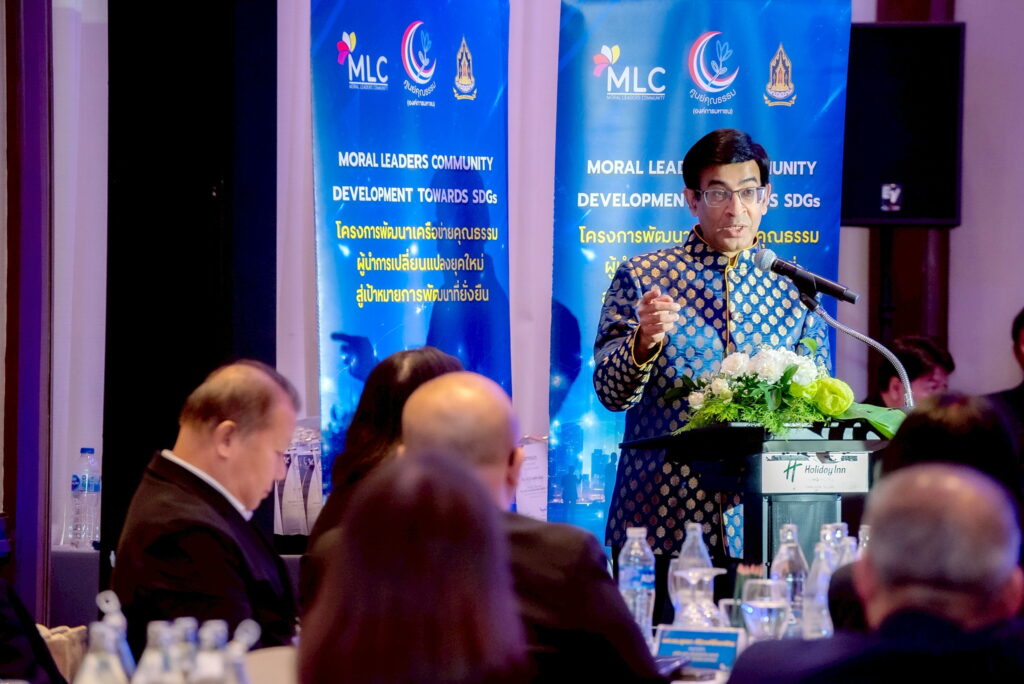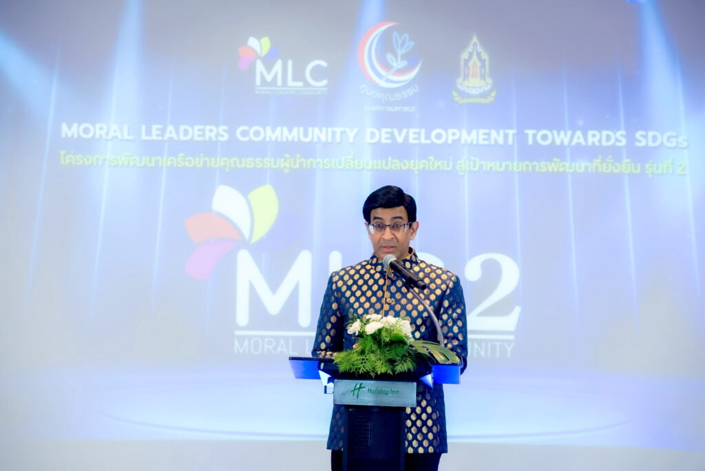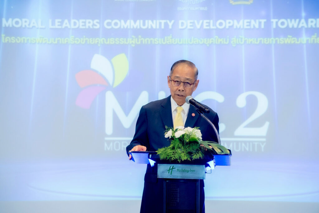 วันที่ 23 กรกฎาคม 2568 — ศูนย์คุณธรรม (องค์การมหาชน) โดยสถาบันวิทยาการคุณธรรม (Moral Academy) จัดพิธีปิดโครงการ “พัฒนาเครือข่ายคุณธรรมผู้นำการเปลี่ยนแปลงยุคใหม่ สู่เป้าหมายการพัฒนาที่ยั่งยืน รุ่นที่ 2 (MLC2)” ณ โรงแรมฮอลิเดย์ อินน์ สีลม กรุงเทพฯ โดยได้รับเกียรติจากพลอากาศเอก ชลิต พุกผาสุข องคมนตรี เป็นประธานในพิธี พร้อมกล่าวให้โอวาท และมอบเกียรติบัตรแก่ผู้นำทั้ง 31 ท่าน จาก 31 องค์กรชั้นนำของประเทศ ที่เข้าร่วมโครงการ