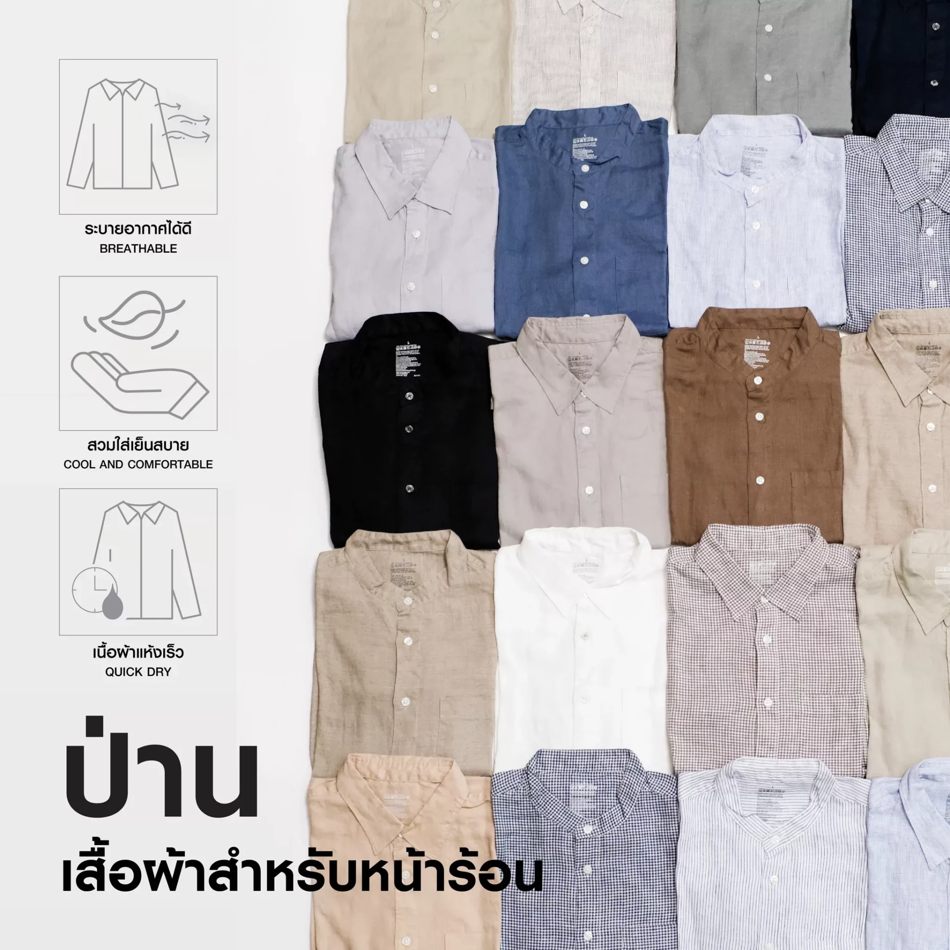 สัมผัสการสวมใส่เสื้อผ้าเย็นสบาย สัมผัสบางเบา แห้งไว จาก MUJI HEMP Collection ทางเลือกใหม่ของแฟชั่น ถักทอจากเส้นใยที่ยั่งยืน วางจำหน่ายแล้ววันนี้ ที่ร้าน MUJI ทุกสาขาทั่วประเทศ ดูรายละเอียด Facebook: MUJI Thailand และ Instagram: MUJI_Thailand / LINE Official Account : @MUJIThailand