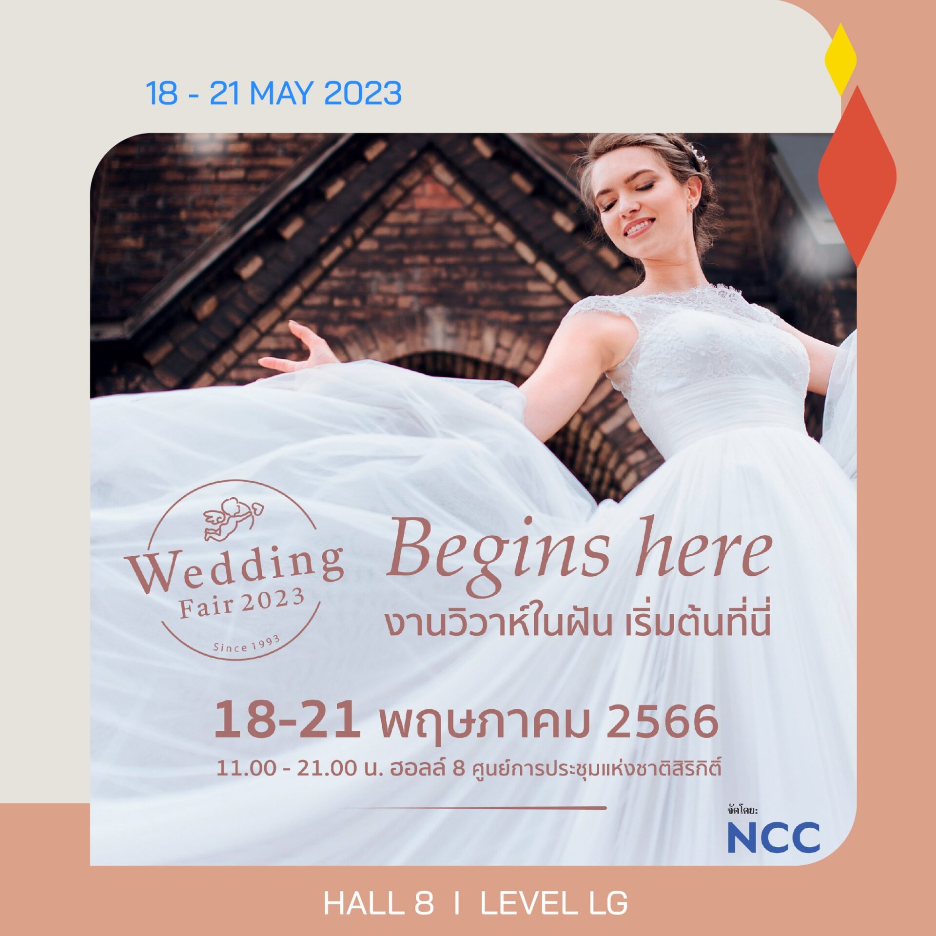 • Wedding Fair 2023 เนรมิตงานแต่งในฝันให้เป็นจริง ด้วยสินค้าและบริการสำหรับงานแต่งงานแบบครบวงจร ระหว่างวันที่ 18-21 พฤษภาคม