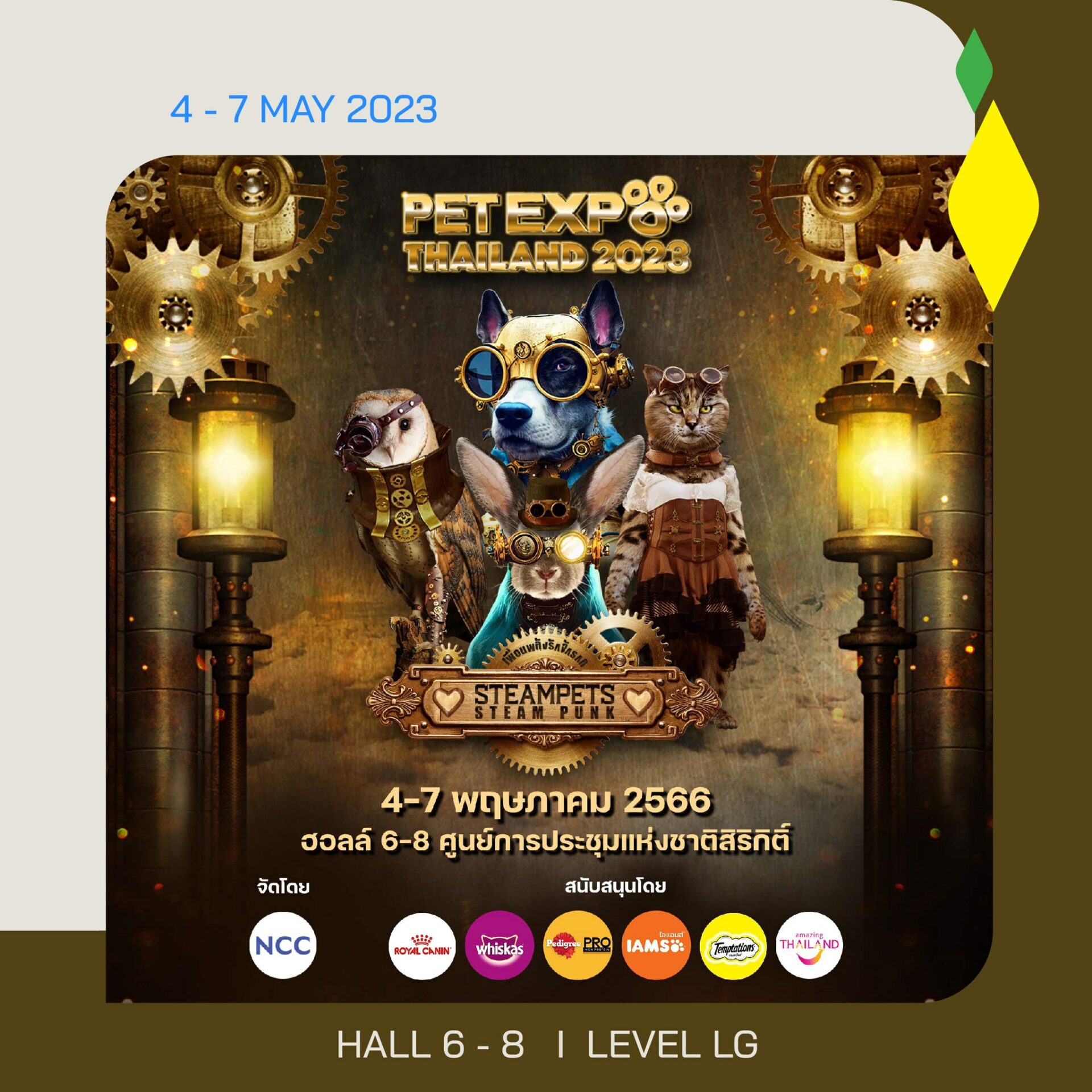 • Pet Expo Thailand 2023 สนุกกับการเลือกช้อปสินค้าแบรนด์ดังและไอเทมสุดเก๋สำหรับสัตว์เลี้ยงตัวโปรด ระหว่างวันที่ 4-7 พฤษภาคม