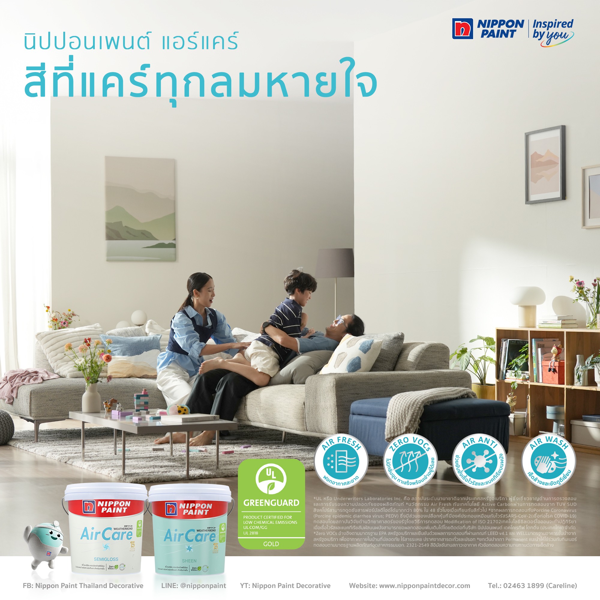 “นิปปอนเพนต์” แบรนด์สีนวัตกรรมยอดขายอันดับ 1 ของเอเชียจากประเทศญี่ปุ่น ย้ำภาพลักษณ์จุดยืนสำคัญของ “นิปปอนเพนต์ แอร์แคร์” ( Nippon Paint AirCare) ในฐานะสุดยอดสีนวัตกรรมทาภายในเพื่อสุขภาพ เกรดอัลตร้าพรีเมียม รายแรกในไทยกับตรารับรองระดับโลก GREENGUARD GOLD จากสถาบัน UL สหรัฐอเมริกา การันตีอากาศภายในห่างไกลสารระเหย (Zero VOCs) เสมือนเป็นตัวช่วยผู้ดูแลอากาศในบ้านให้สะอาดกว่า เสริมสุขภาพที่ดีขึ้นให้กับทุกชีวิตกับคำมั่น “สีที่แคร์ทุกลมหายใจ” โดยครั้งนี้ นิปปอนเพนต์ แอร์แคร์ มาพร้อมอีกหนึ่งความเหนือกว่ากับบทบาทการเป็น “Lifestyle Interior Paint” ซึ่งเข้าใจไลฟ์สไตล์ของผู้อยู่อาศัยทุกรูปแบบอย่างแท้จริง ด้วยความหลากหลายของสีสันที่ช่วยให้ผู้ใช้ได้สะท้อนตัวตนตามต้องการ โดยนิปปอนเพนต์เริ่มสื่อสารภาพลักษณ์ดังกล่าวผ่านอินเทอร์เน็ตฟิล์มเรื่องใหม่กับ “คนรักสุขภาพ” และ “ทุกคนที่มองหาสีสันที่ใช่ เพื่อแสดงอัตลักษณ์จากภายในสู่ที่อยู่อาศัย” เพื่อส่งให้ “นิปปอนเพนต์ แอร์แคร์” ขึ้นแท่นเป็นสีนวัตกรรมทาภายในที่หนึ่งในใจของทุกคน