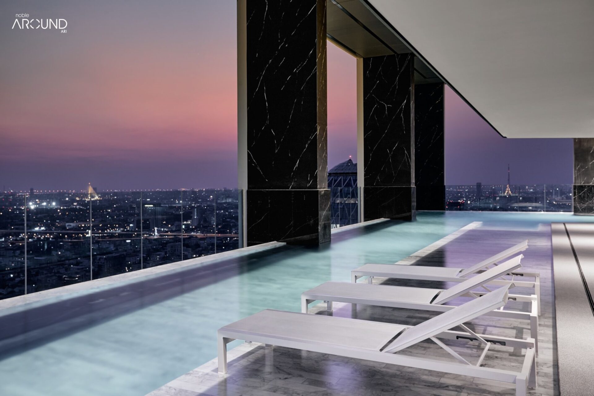 โนเบิล อราวน์ อารีย์” (Noble Around Ari) คอนโดมิเนียมพร้อมอยู่ ใจกลางเมืองแห่งใหม่ ชูจุดเด่นการออกแบบสถาปัตยกรรมแบบ “Timeless Modernism Design” เน้นความโปร่งและความเรียบง่าย ใช้วัสดุสมัยใหม่ผสานกันของสถาปัตยกรรมเรียบง่ายสอดคล้องกับการใช้งาน มีจำนวน 2 อาคาร 611 ยูนิต อาคารจอด Conventional Parking และ Auto Parking 47% รูปแบบห้องพักอาศัย ถูกออกแบบมาอย่างลงตัว ได้แก่ 1 ห้องนอน ขนาด 26.40 – 34.95 ตร.ม. และ 1 ห้องนอนใหญ่ ขนาด 41.56 – 44.89 ตร.ม. พร้อมด้วยพื้นที่ส่วนกลาง (Facility) กว่า 4,000 ตร.ม. ออกแบบเพื่อรองรับความต้องการใช้งานที่หลากหลาย อาทิ สวน AROUND GARDEN, THE MEZZANINE LIBRARY พื้นที่ทำงานและอ่านหนังสือ, UPTOWN SKY LOUNGE พื้นที่กว่า 350 ตร.ม. หน้ากว้างเต็มอาคารชั้นสูง จัดพื้นที่แบ่งเป็นโซนให้เลือกตามความต้องการ เช่น LOUNGE SOFA, TEA ROOM, CO KITCHEN COUNTER, GAME ZONE และ OUTDOOR SEATING เป็นต้น พื้นที่สีเขียว สวนดาดฟ้า ARI CLOUD FOREST และ SKY PIER GARDEN และอีกหนึ่งไฮไลท์ สระว่ายน้ำ DIMENSIONAL POOL 360 องศา มาพร้อมฟิตเนส HORIZONTAL GYM บนทำเลที่ดีที่สุดในย่านอารีย์ ติด BTS สถานีอารีย์ เพียง 90 เมตร