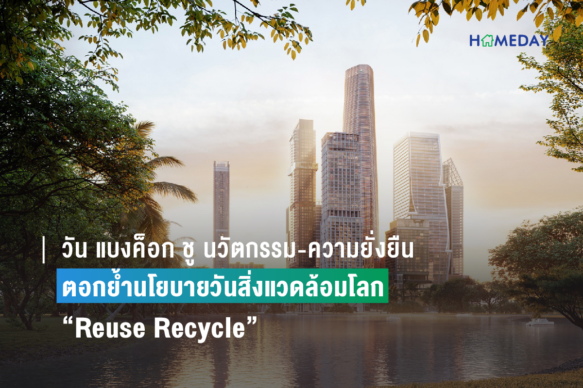 วัน แบงค็อก เมืองอัจฉริยะแห่งความยั่งยืนสมบูรณ์แบบใจกลางกรุงเทพฯ ตอกย้ำวิสัยทัศน์และความมุ่งมั่นในการพัฒนาโครงการอสังหาริมทรัพย์ ด้วยหลักการของความยั่งยืน สอดรับกับเป้าหมายการลดปัญหาสิ่งแวดล้อมโลกขององค์การสหประชาชาติ (UN) และกรุงเทพมหานครฯ ร่วมเป็นส่วนหนึ่งในการดูแลและอนุรักษ์สิ่งแวดล้อม พร้อมส่งเสริมนโยบายวันสิ่งแวดล้อมโลก Reduce (ลด) และ Recycle (รีไซเคิล) ด้วยการนำวัสดุเหลือใช้และวัสดุที่ใช้แล้ว มาเปลี่ยนให้มีคุณค่าเป็นประโยชน์ในด้านต่างๆ เพื่อสนับสนุนการพัฒนาทางเศรษฐกิจและความเป็นอยู่ของผู้คนในเมือง