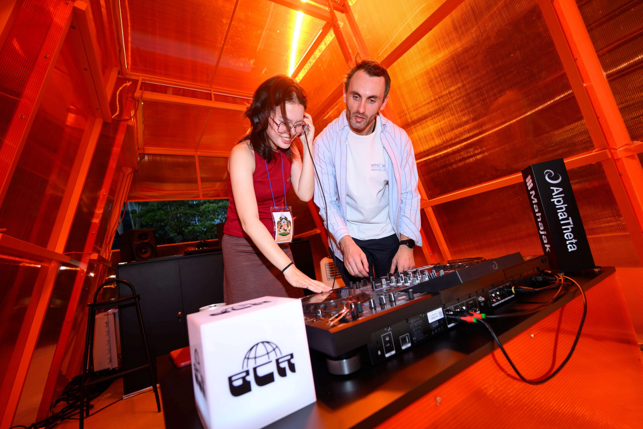 ภายในบูธสี่เหลี่ยมสีส้มสดใส อันเป็นสัญลักษณ์ของความเร่งด่วนและกระตุ้นการลงมือทำ เปรียบเสมือน ‘สัญญาณ’ เชิญชวนให้ผู้คนหยุดและเข้ามาปล่อยพลังสร้างสรรค์ พบกับเครื่องเล่น DJ อุปกรณ์ดนตรี ครบครัน พร้อมกล้องที่บันทึกทุกโมเมนต์สำคัญ ไม่ว่าจะเป็นการทดลองเป็น DJ, ร้องเพลง, หรือแต่งเนื้อเพลงสั้นๆ โดยอุปกรณ์ดนตรีระดับมืออาชีพที่ได้รับการสนับสนุนจาก Alphatheta จะช่วยเสริมประสบการณ์ให้ ทุกคนรังสรรค์และบันทึกผลงานได้อย่างง่ายดาย ผลงานที่โดดเด่นจะได้รับคัดเลือกให้เผยแพร่บนแพลตฟอร์มออนไลน์ของ BCR และ วัน แบงค็อก ตลอดสัปดาห์ของงานเทศกาล ซึ่งเป็นอีกหนึ่งกลไกสำคัญในการสนับสนุนและสร้างโอกาสให้กับคอมมูนิตี้สร้างสรรค์ นอกจากนั้นยังมีการแสดงสดจากศิลปินรับเชิญและ DJ ชื่อดังมากมายในช่วงสุดสัปดาห์