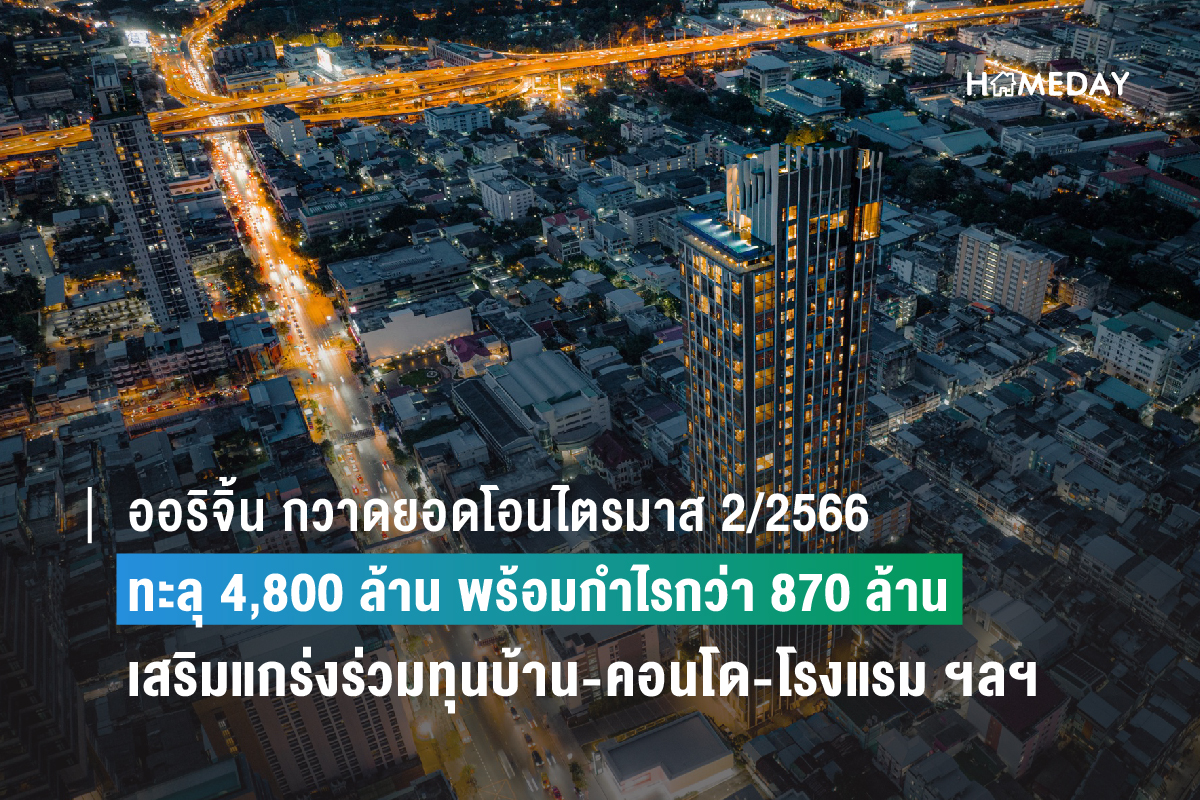 ออริจิ้น กวาดยอดโอนไตรมาส 2/2566 ทะลุ 4,800 ล้าน พร้อมกำไรกว่า 870 ล้าน เสริมแกร่งร่วมทุนบ้าน-คอนโด-โรงแรม-คลังสินค้า 25 โครงการ หนุนเคาะจ่ายปันผลระหว่างกาลหุ้นละ 0.16 บาท ขึ้น XD 28 ส.ค.นี้ - Homeday Space | HOMEDAY