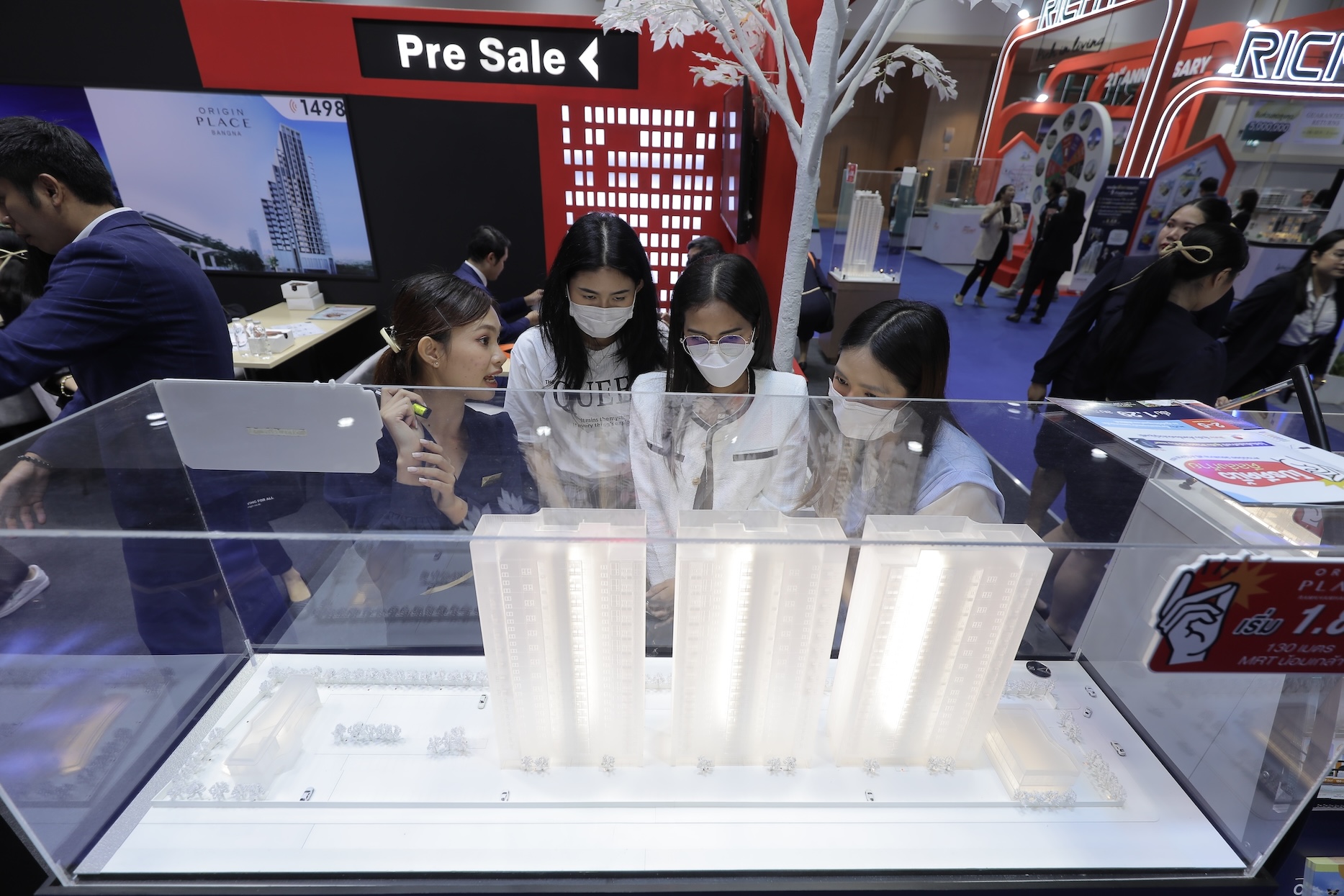 ทั้งนี้ กลุ่มโครงการคอนโดพร้อมอยู่ (Ready to move) ถือเป็นกลุ่มโครงการที่ผู้บริโภคให้ความสนใจมากที่สุด คิดเป็นยอดขายรวมเกือบ 300 ล้านบาท หรือมากกว่า 60% ของยอดขายในงานทั้งหมด โดยแบรนด์ที่ได้รับการตอบรับเป็นอย่างดีจากผู้บริโภค และสามารถทำยอดขายได้เป็นอันดับ 1 ในงานมหกรรมบ้านและคอนโดครั้งที่ 44 คือ แบรนด์ “ดิ ออริจิ้น” ซึ่งเป็นแบรนด์คอนโดมิเนียมที่เจาะตลาดกลุ่มรุ่นใหม่ วัย Gen Z และกลุ่มผู้เพิ่งเริ่มต้นทำงาน (First Jobber) ที่ใส่ใจทั้งฟังก์ชันและทำเลที่โดนใจคนรุ่นใหม่ ใกล้รถไฟฟ้า พร้อมกับราคาที่เข้าถึงได้ เช่น โครงการ ดิ ออริจิ้น ลาดพร้าว-บางกะปิ (The Origin Ladprao-Bangkapi), ดิ ออริจิ้น ลาดพร้าว 15 (The Origin Ladprao 15), ดิ ออริจิ้น บางแค (The Origin Bangkae) และ ดิ ออริจิ้น เตรียมน้อม สเตชั่น (The Origin Triam Nom Station)