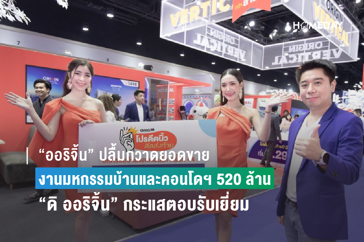 “ออริจิ้น พร็อพเพอร์ตี้” ปลื้มโกยยอดขายจากงานมหกรรมบ้านและคอนโดครั้งที่ 44 จากคอนโดมิเนียมและบ้านในทุกเซ็กเมนท์ ทั้งเพื่ออยู่อาศัยและลงทุน ครอบคลุมพื้นที่กรุงเทพฯ-ปริมณฑล-EEC เพียง 4 วันได้ 520 ล้านบาท เผยคอนโดแบรนด์ “ดิ ออริจิ้น” ครองตำแหน่งไฟท์ติ้งแบรนด์ คว้ายอดขายอันดับ 1 เหตุฟังก์ชันเด่น-ดีไซน์โดน ตอบโจทย์ความต้องการผู้บริโภค ส่งโปรโมชั่น “โปรดีดนิ้ว ดีลส่งท้าย” ลุยโกยยอด 2 เดือนสุดท้ายต่อเนื่อง