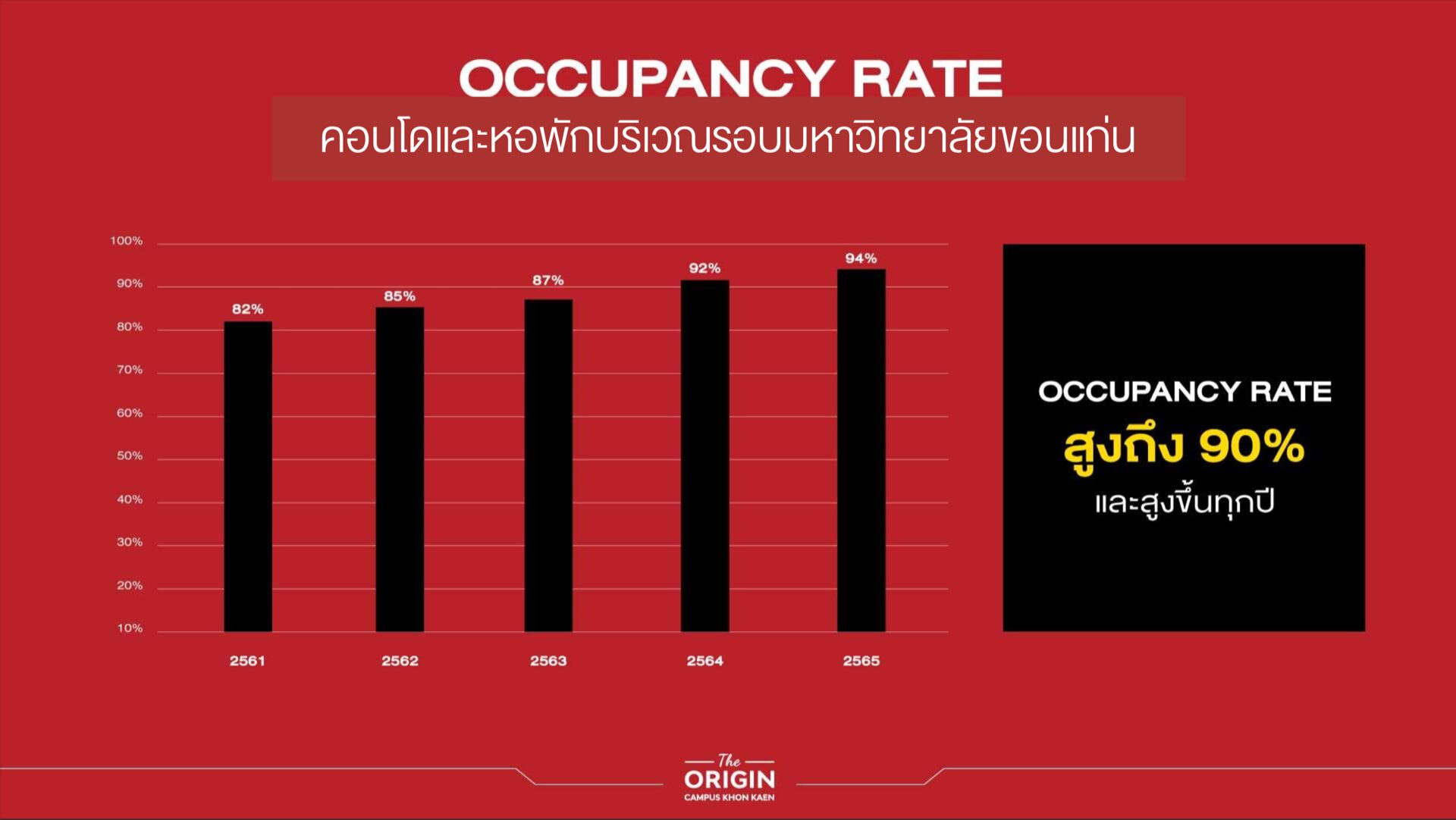 การเติบโตดังกล่าว ส่งผลให้ จ.ขอนแก่น มีความต้องการที่อยู่อาศัยเพิ่มขึ้นต่อเนื่อง ยอดโอนกรรมสิทธิ์โครงการที่อยู่อาศัยทุกประเภทในช่วงปี 2562-2565 เติบโตขึ้นเฉลี่ยปีละ 10-15% พื้นที่โดยรอบมหาวิทยาลัยกลายเป็นชุมชนหนาแน่น มีความต้องการแหล่งไลฟ์สไตล์และที่อยู่อาศัยอย่างต่อเนื่อง คอนโดมิเนียมและหอพักรอบมหาวิทยาลัย มีอัตราการเช่า (Occupancy Rate) ในช่วงปี 2562-2565 สูงถึง 85-95% ค่าเช่าคอนโดมิเนียมเฉลี่ยอยู่ที่ 9,000-10,000 บาท