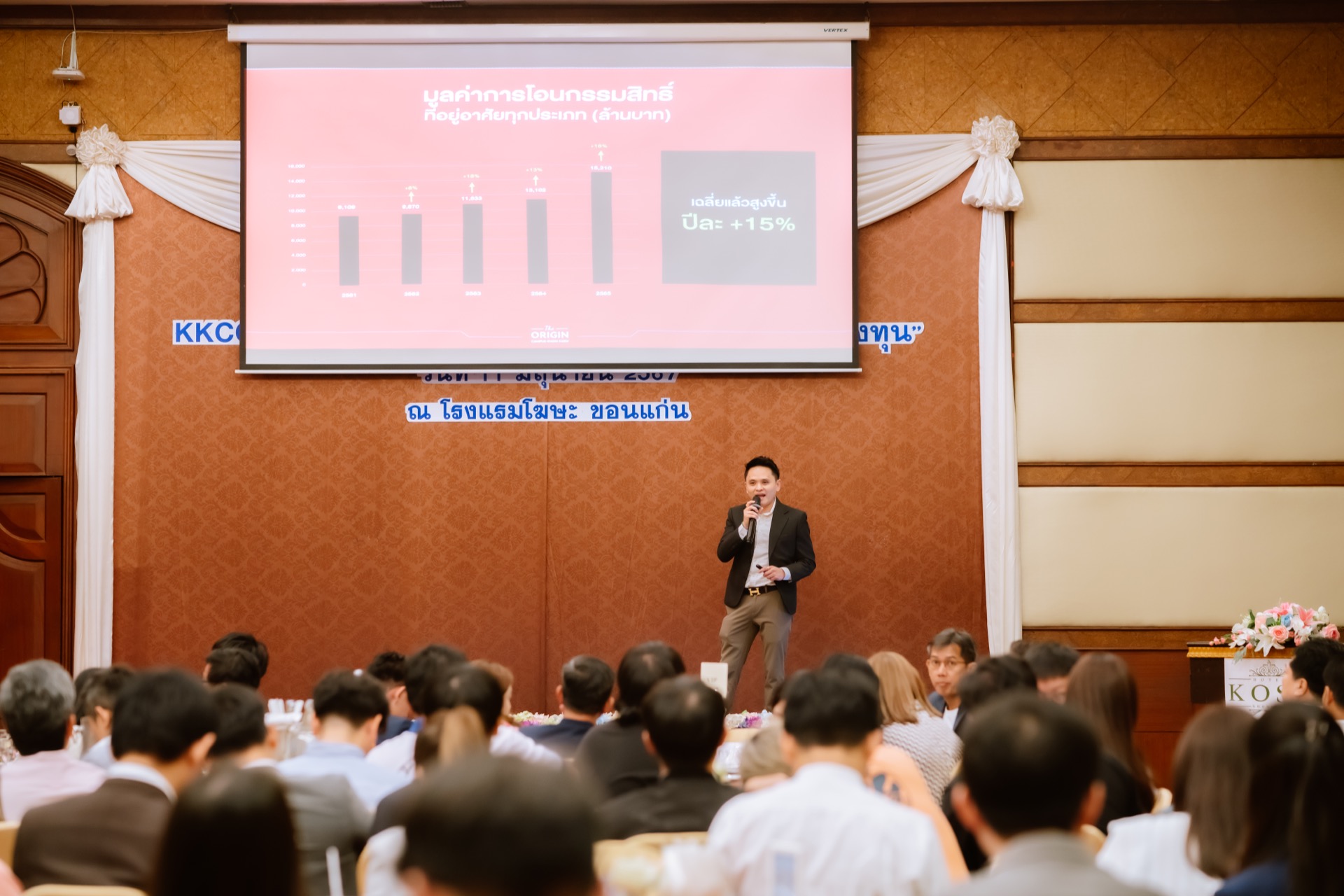 “เรามองเห็นแล้วว่า ขอนแก่นเป็นเมืองศักยภาพ จึงได้ทำงานใกล้ชิดร่วมกับหอการค้าขอนแก่น เพื่อช่วยกระตุ้นเศรษฐกิจในขอนแก่นให้คึกคัก พัฒนาเมืองให้พร้อมรองรับการเป็น Education Hub และ Medical Hub ในปีที่ผ่านมา เราจึงได้เปิดตัวโครงการคอนโดมิเนียมในขอนแก่นถึง 2 โครงการ มูลค่ารวมประมาณ 1,600 ล้านบาท ได้แก่ ดิ ออริจิ้น แคมปัส ขอนแก่น เพื่อตอบโจทย์นักศึกษาและบุคลากรมหาวิทยาลัย และออริจิ้น เพลส ขอนแก่น–กัลปพฤกษ์ ตอบโจทย์โซนการอยู่อาศัยของบุคลากรทางการแพทย์ เราได้รับการตอบรับจากทั้ง 2 โครงการอย่างยอดเยี่ยม มียอดขายสะสมเฉลี่ยกว่า 70% กลายเป็นเจ้าตลาดคอนโดมิเนียมในจังหวัด เรายังเลือกใช้ผู้รับเหมาก่อสร้างระดับประเทศอย่างวิศวภัทร์ เพื่อสร้างความมั่นใจให้กับผู้ซื้อ โดยเริ่มก่อสร้างดิ ออริจิ้น แคมปัส ขอนแก่น แล้วตามแผนงาน” นายประเสริฐกุล กล่าว