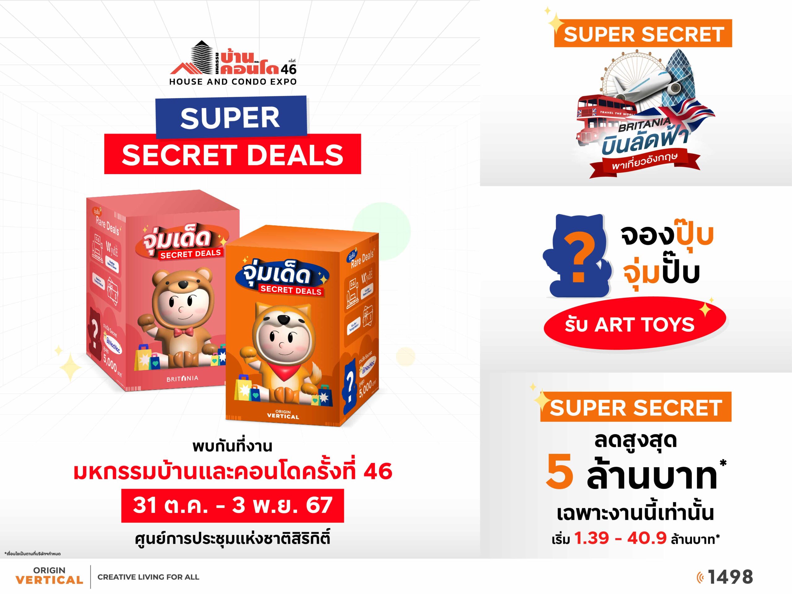 ออริจิ้น เวอร์ติเคิล – บริทาเนีย จับเทรนด์กล่องสุ่ม เปิดตัวแคมเปญคอนโด-บ้านไตรมาส 4 “จุ่มเด็ด Secret Deals” ยกทัพโครงการที่อยู่อาศัยพร้อมอยู่ 70 โครงการ จับมือหลากพันธมิตร อาทิ NocNoc, WydE Interior ชวนลูกค้าจุ่มดีลเด็ด รับโปรเพิ่มสูงสุด 10 รายการ, ผ่อนต่ำล้านละ 900 บาท นาน 2 ปี*, ดอกเบี้ย 0% น