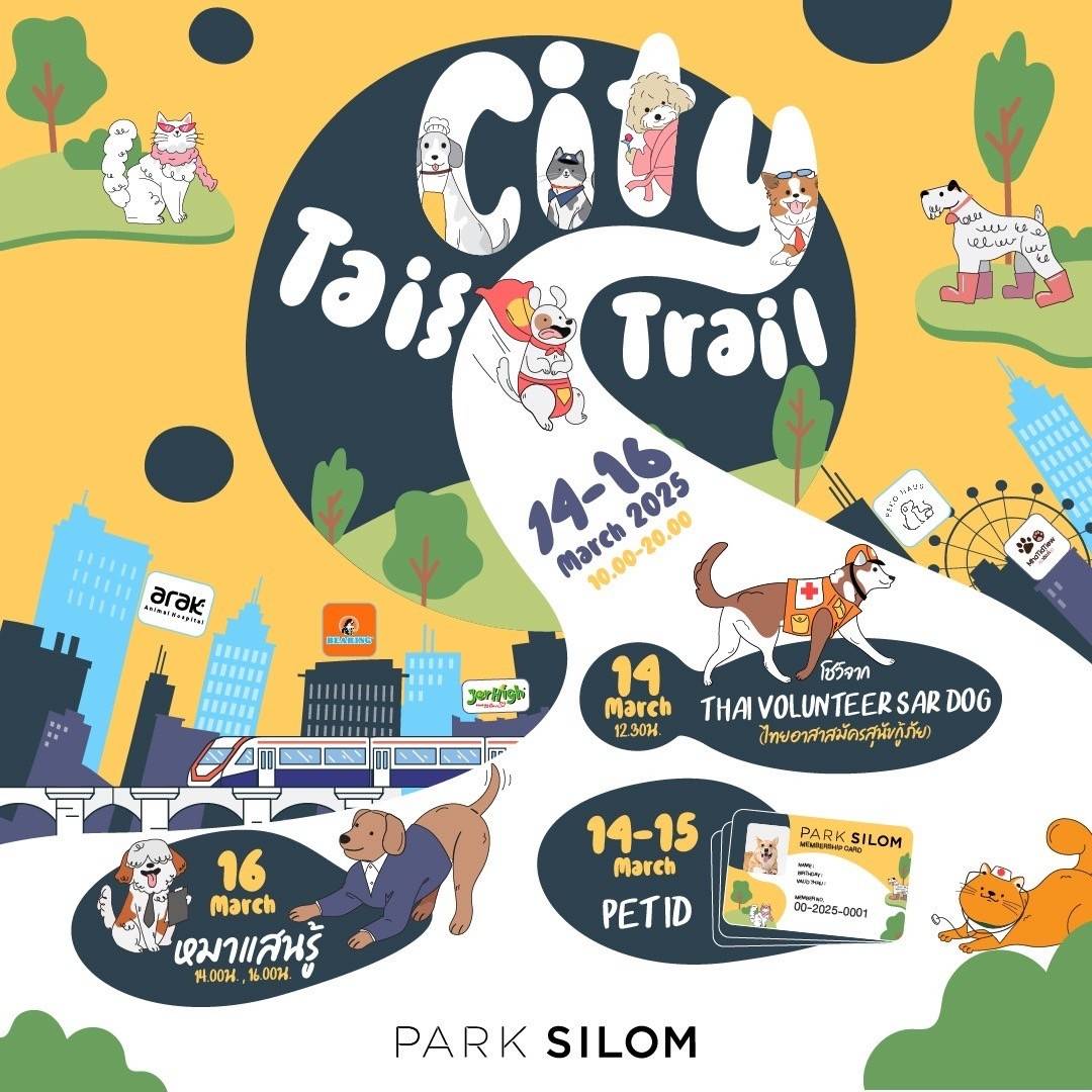 เจ้าของสัตว์เลี้ยงและผู้สนใจร่วมเป็นส่วนหนึ่งของชุมชนใหม่แห่งนี้ สามารถเข้าร่วมงาน City Tail Trail และสัมผัสประสบการณ์ใหม่ที่พาร์ค สีลม ได้ระหว่างวันที่ 14-16 มีนาคมนี้
