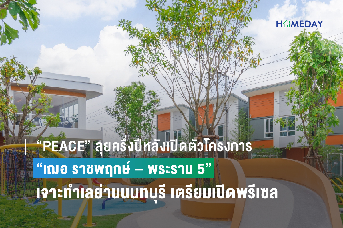 “พีซแอนด์ลีฟวิ่ง” มองภาพรวมตลาดบ้านครึ่งปีหลังสดใส เตรียมต่อยอดความสำเร็จของแบรนด์ เฌอ (CHER) ลุยเปิดตัวโครงการใหม่ กับโครงการ “เฌอ ราชพฤกษ์ – พระราม 5” ทาวน์โฮม 2 ชั้น มีแนวคิดการออกแบบภายใต้คอนเซ็ปต์‘Modern yet traditional’ บนทำเลที่เติบโตอย่างรวดเร็วย่านนครอินทร์ – พระราม 5 มูลค่าโครงการ 550 ล้านบาท พร้อมเปิดตัวแบบบ้านใหม่หน้ากว้างถึง 8 เมตร และเชื่อมต่อการเดินทางได้หลากหลายรูปแบบ ทั้งรถยนต์ส่วนตัว รถไฟฟ้า และเรือ ในราคา 3.5 – 6 ล้านบาท เตรียมเปิดพรีเซลเดือนกันยายนนี้