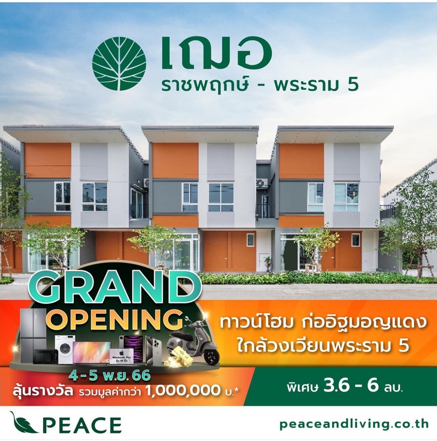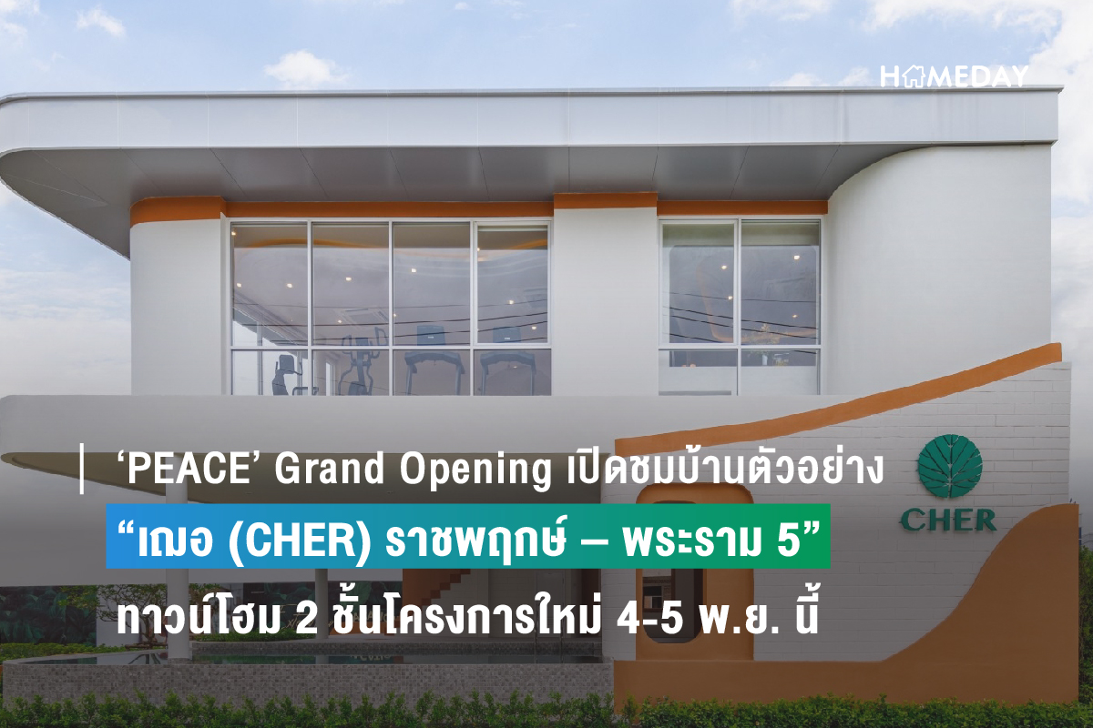 “พีซแอนด์ลีฟวิ่ง” จัดงาน Grand Opening เปิดบ้านตัวอย่างให้เข้าชมอย่างเป็นทางการกับโครงการ “เฌอ (CHER) ราชพฤกษ์ – พระราม 5” ทาวน์โฮม 2 ชั้นโครงการใหม่ ที่มาพร้อมการออกแบบภายใต้คอนเซ็ปต์ ‘Modern yet traditional’ ทั้งยังเชื่อมต่อการเดินทางได้ครอบคลุมหลากหลายรูปแบบ และพบกับข้อเสนอสุดพิเศษแบบจัดเต็ม พร้อมลุ้นรับของรางวัลทุกยูนิต รวมมูลค่ากว่า 1 ล้านบาท* และพิเศษสุด ๆ กับการเปิดจองโซนหน้าสวน ราคา 3.6 – 6 ล้านบาท* เฉพาะลูกค้าที่จองภายในวันที่ 4 – 30 พฤศจิกายนนี้