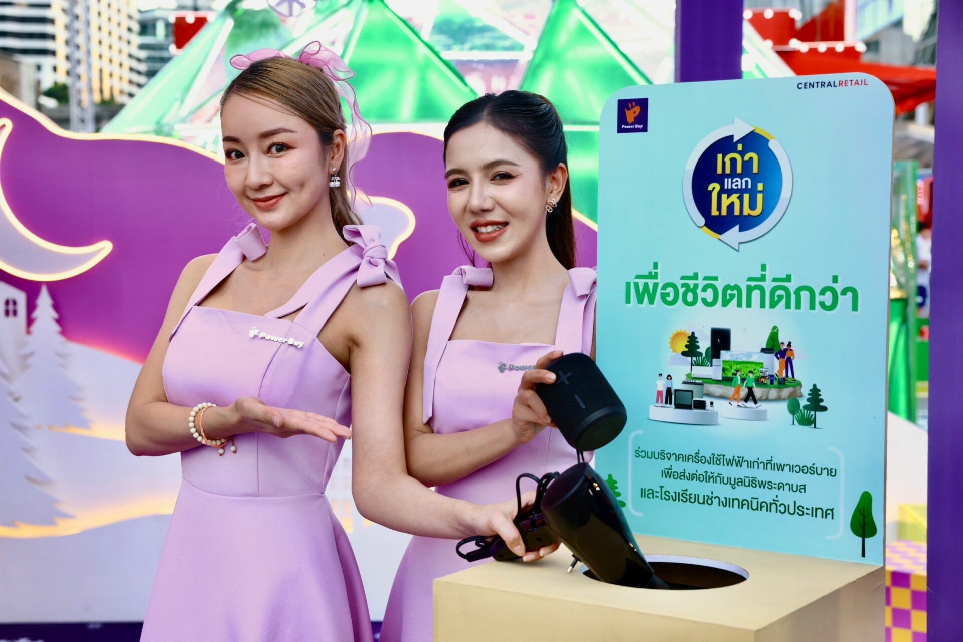นอกจากนี้ยังชวนส่งต่อความสุขกับโครงการดีๆ เพื่อสังคม “เก่าแลกใหม่ เพื่อชีวิตที่ดีกว่า” ต่อเนื่องเป็นปีที่ 2 ร่วมแบ่งปันเครื่องใช้ไฟฟ้าที่ไม่ใช้แล้วได้ที่เพาเวอร์บายทุกสาขา โดยเราจะนำไปส่งต่อให้กับมูลนิธิพระดาบส และโรงเรียนช่างเทคนิคทั่วประเทศ เพื่อใช้เป็นสื่อการเรียนการสอนในการ ฝึกวิชาชีพให้กับนักเรียน ไม่เพียงเท่านี้เครื่องใช้ไฟฟ้าที่ได้รับการซ่อมแซมจนสามารถใช้งานได้จะนำไปส่งมอบให้กับโรงเรียนในพื้นที่ห่างไกลต่อไป ตามนโนบายของบริษัทฯ ที่ต้องการช่วยยกระดับคุณภาพชีวิตของคนไทยให้ดีขึ้น ไปพร้อมๆ กับการช่วยสร้างโลกสีเขียวด้วยการลดการขยะอิเล็กทรอนิกส์อย่างยั่งยืน (E-Waste) อีกด้วย โดยลูกค้าที่นำเครื่องใช้ไฟฟ้าเก่ากลุ่มทีวี แอร์ เครื่องซักผ้า เครื่องอบผ้า และตู้เย็น มาร่วมบริจาคที่เพาเวอร์บายทุกสาขาทั่วประเทศ เราขอมอบส่วนลดเพิ่มสูงสุด 10,000 บาท เพื่อซื้อสินค้าใหม่ประเภทเดียวกัน ส่วนเครื่องใช้ไฟฟ้าขนาดเล็กและ แกดเจ็ต รับคูปองส่วนลด 100 บาท แทนคำขอบคุณ