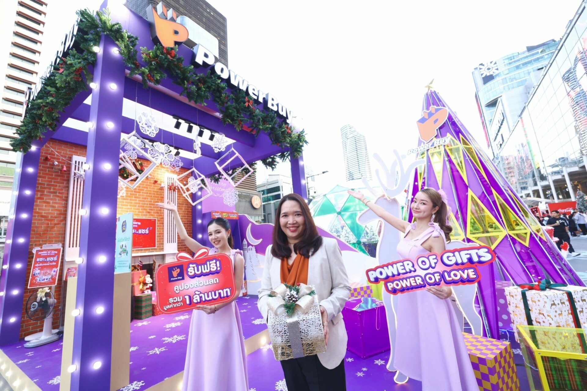 ทั้งนี้เพาเวอร์บายยังได้เนรมิต Power Buy Giant Gift Box กล่องของขวัญขนาดใหญ่แลนด์มาร์คแห่งความสุขและรอยยิ้มเพื่อให้ทุกคนมาร่วม เฉลิมฉลองคริสต์มาสและปีใหม่ด้วยกัน กับกล่องของขวัญยักษ์สีม่วงโดดเด่นที่ตกแต่งด้วยเครื่องใช้ไฟฟ้าสุดล้ำ ประดับไฟสุดตระการตา ตั้งตระหง่านอยู่บริเวณลานหน้าเซ็นทรัลเวิลด์ ตั้งแต่วันนี้ – 2 ม.ค. 2567 ให้ทุกคนได้มาร่วมถ่ายรูปเช็คอิน พร้อมร่วมสนุกกับกิจกรรม “แชะ&แชร์” เพียงถ่ายภาพ และแชร์ทาง Facebook พร้อมแคปชั่นอวยพรปีใหม่โดนใจ ติด #powerofgiftspoweroflove ลุ้นรับของรางวัลมูลค่ากว่า 1000,000 บาท พลาดไม่ได้…ร่วมเอ็นจอยไปกับกิจกรรม pinball game แจกฟรี!!! ของรางวัลมากมายจากเพาเวอร์บาย โดยเรามั่นใจว่าแคมเปญส่งเสริมการตลาดทั้งหมดนี้ จะ ตอบโจทย์ความต้องการของผู้บริโภคทุกกลุ่มได้อย่างแน่นอน”