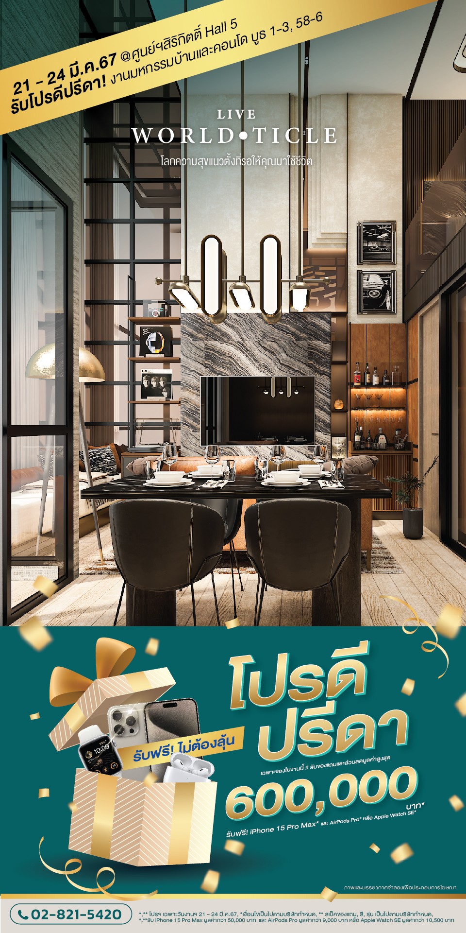 ปรีดา กรุ๊ป ร่วมงาน มหกรรมบ้านและคอนโด ครั้งที่ 45 พร้อมเสิร์ฟ “Pro.D..ปรีดา” เริ่มต้น Pro.D ด้วยคอนโดมิเนียมพร้อมอยู่ทำเลศักยภาพ ราคา 1.99 ล้านบาท พร้อมด้วย Pro.D ของแถมดี ฟรี iPHONE 15 PRO MAX (256 GB)* และ Pro.D จองทันที รับเพิ่ม AirPods Pro (รุ่น2) หรือ Apple Watch SE รุ่น GPS (44 มม.)