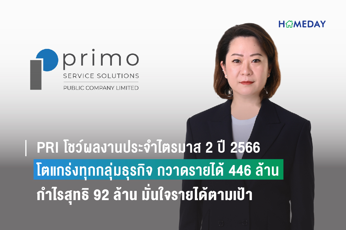 นางสาวจตุพร วิไลแก้ว ประธานเจ้าหน้าที่บริหาร บริษัท พรีโม เซอร์วิส โซลูชั่น จำกัด (มหาชน) หรือ PRI ผู้นำธุรกิจบริการด้านอสังหาริมทรัพย์สมัยใหม่แบบครบวงจร เปิดเผยว่า ผลการดำเนินงานช่วงไตรมาส 2 ของปี 2566 (1 เม.ย.-30 มิ.ย.66) บริษัทมีรายได้รวมอยู่ที่ 446 ล้านบาท เพิ่มขึ้น 124% เมื่อเทียบกับช่วงเดียวกันของปี 2565 (%YoY) และมีกำไรสุทธิอยู่ที่ 92 ล้านบาท เพิ่มขึ้น 77% เมื่อเทียบกับช่วงเดียวกันของปี 2565 (%YoY) รวมถึงบริษัทมีภาพรวมรายได้ในครึ่งแรกของปี 2566 (1 ม.ค.-30 มิ.ย.66) อยู่ที่ 842 ล้านบาท คิดเป็น 65% ของเป้ารายได้รวมทั้งปี 1,300 ล้านบาท