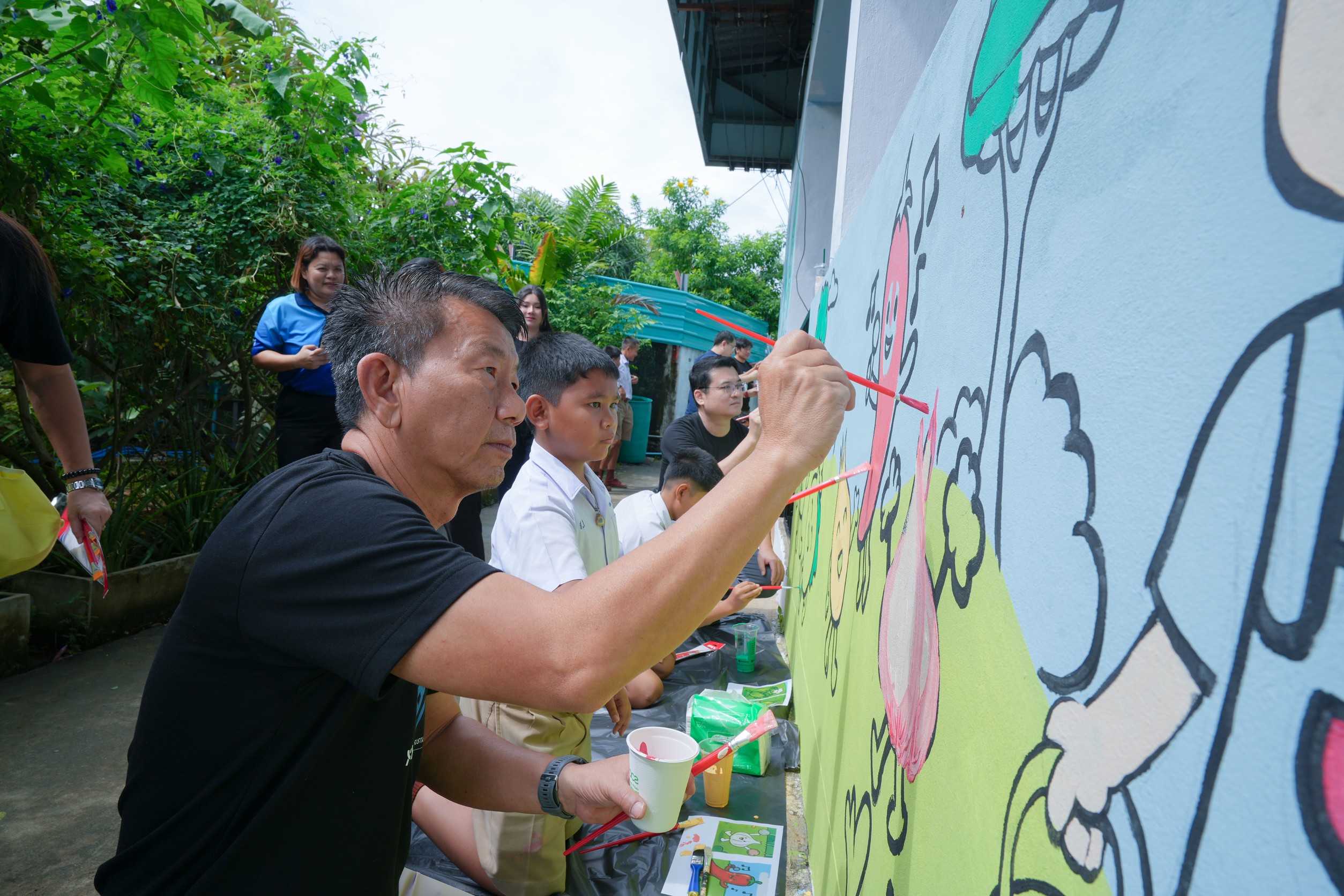 • ทาสีรั้ว และกำแพงโรงเรียน เติมสีสันให้บรรยากาศสดชื่นและน่าอยู่