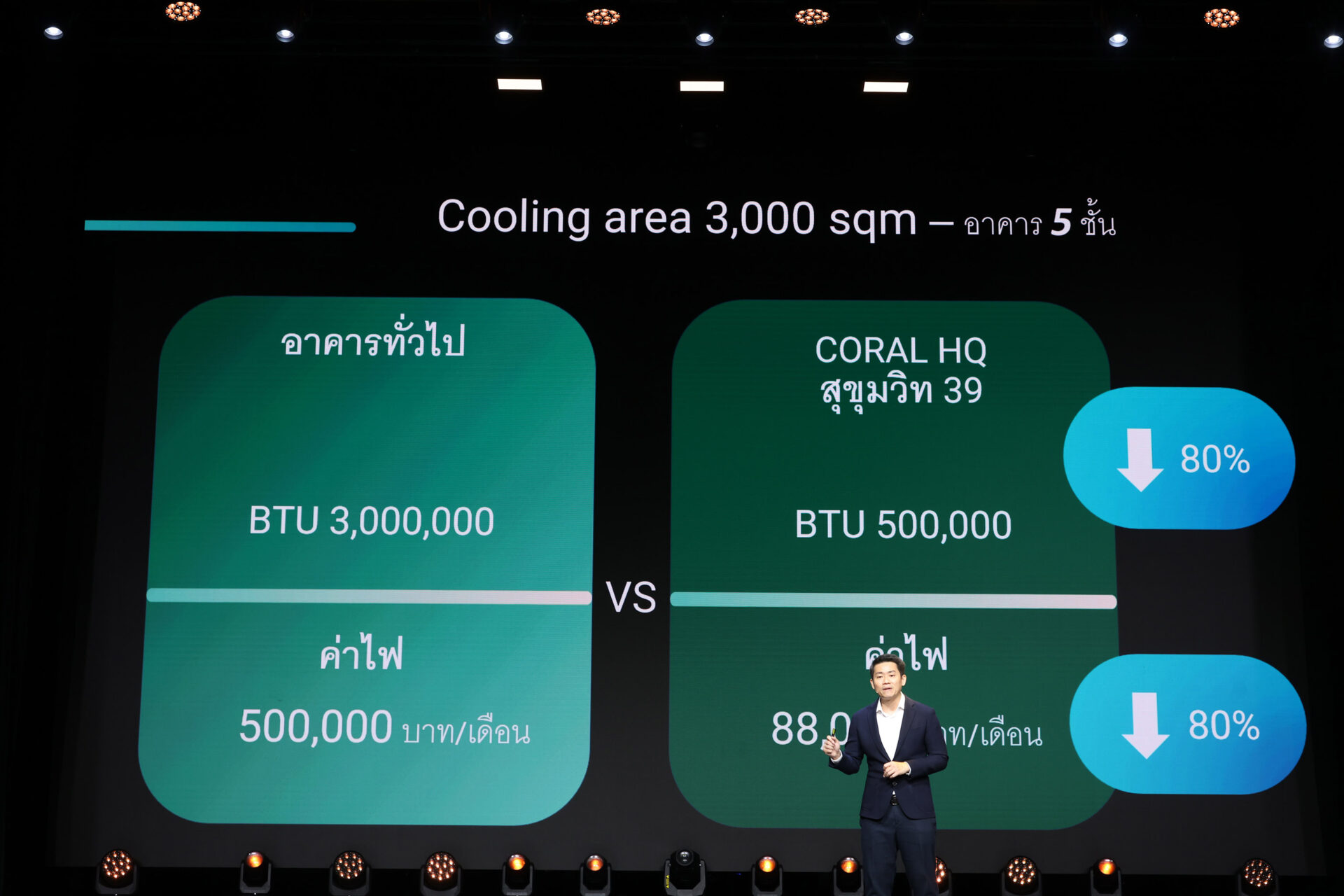 นายเทพฤทธิ์ ทิพย์ชัชวาลวงศ์ ประธานเจ้าหน้าที่บริหาร บริษัท คอรัล ไลฟ์ จำกัด กล่าวว่า อาคารประหยัดพลังงานมีความสำคัญที่ส่งผลต่อคน ชุมชน และสิ่งแวดล้อม โดยเฉพาะในสถานการณ์ที่โลกต้องเผชิญกับการเปลี่ยนแปลงของสภาพอากาศ (Climate Change) ที่เป็นผลมาจากก๊าซคาร์บอนไดออกไซด์ (CO2) เพิ่มขึ้นอย่างก้าวกระโดดตามกิจกรรมทางเศรษฐกิจที่สูงขึ้นในช่วง 40 ปีที่ผ่านมา ซึ่งอสังหาริมทรัพย์ นับเป็นหนึ่งในธุรกิจที่มีส่วนในการปล่อยคาร์บอนสูงถึง 40%จากการก่อสร้าง และการใช้อาคารโดยระบบควบคุมอาคารทำงานด้วย Digital twin คือ ข้อมูลทางกายภาพของอาคารที่ใส่ข้อมูลทั้งหมดไปไว้ในโลกดิจิทัล ทั้งค่าฝุ่น PM2.5 การใช้งานลิฟต์โดยสาย ระบบคุมไฟฟ้า ระบบปรับอากาศ การป้องกันอัคคีภัย และทุกอย่างในอาคาร จะแสดงไว้บนแดชบอร์ด (Dashboard) ทำให้บริหารจัดการพลังงานได้อย่างมีประสิทธิภาพ