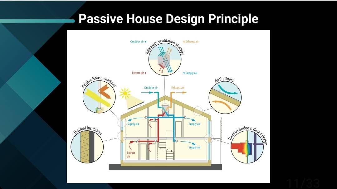 ส่วนของบ้านเดี่ยว พื้นที่ใช้สอย 200 ตารางเมตร ปกติใช้งานอยู่ที่ 100,000 BTU จากการออกแบบระบบทำให้สามารถลดการใช้งานลงเหลือเพียง 10,000 BTU เท่านั้น ทั้งที่ยังเปิดแอร์ตลอดวัน และมียอดการใช้ไฟฟ้าเพียง 2,000 บาทต่อเดือน