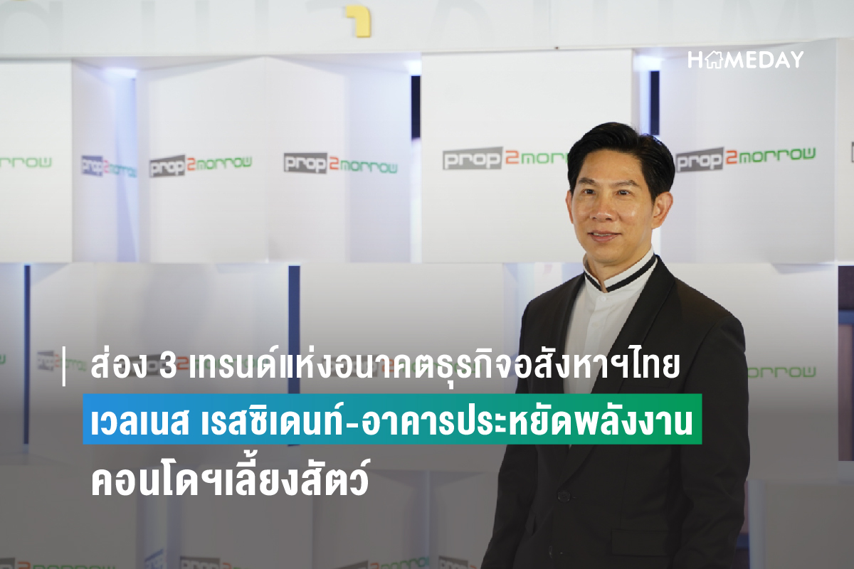 บิ๊กอสังหาฯ ชี้ 3 เทรนด์มาแรงในอนาคต “เวลเนส เรสซิเดนท์-อาคารประหยัดพลังงาน-คอนโดฯเลี้ยงสัตว์” ในงาน เสวนากรุงเทพจตุรทิศ “จัด 9 ทัพ รับศึก 10 ทิศสู้วิกฤติอสังหาฯ” จัดโดย prop2morrow แนะดีเวลอปเปอร์จับโอกาสตลาด “คนสูงวัย” และ “คนรักสัตว์” ที่เติบโตต่อเนื่อง เร่งหาจุดเด่นเพื่อตอบโจทย์ความหลากหลายของผู้บริโภค prop2morrow เปิดช่วงสัมมนา PROP2Talk ส่องเทรนด์ธุรกิจอสังหาริมทรัพย์มาแรง ในงานเสวนา “กรุงเทพจตุรทิศ : จัด 9 ทัพ รับศึก 10 ทิศ สู้วิกฤติอสังหาฯ” เมื่อ 21 กันยายน 2566 ณ สยามสแควร์วัน โรงละครเคแบงก์สยามพิฆเนศ โดยมี 3 กูรูธุรกิจอสังหาริมทรัพย์ ร่วมวิเคราะห์ 3 เทรนด์สำคัญที่น่าจับตามองในปัจจุบันและอนาคต