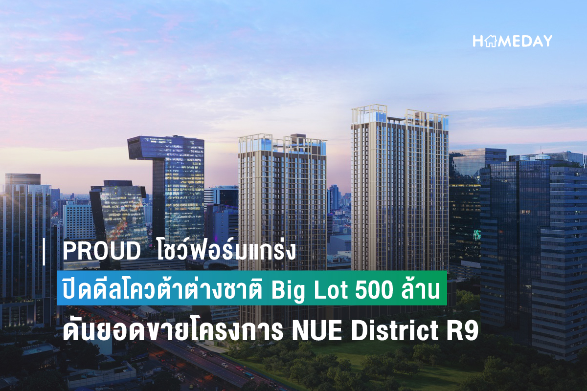 PROUD โชว์ผลงาน หลังเข้าซื้อโครงการนิว ดิสทริค อาร์ 9 (Nue District R9) พิสูจน์ความสำเร็จ ปิดดีลยอดขายต่างชาติ (Foreign Quota) Big Lot จำนวน 500 ล้านบาท ดันยอดขายโครงการทะลุ 90% จ่อคิวปิดการขายภายในไตรมาส 1 ปี 2567 เร่งจัดโปรแรง “ดีงามพระราม 9” ราคาเริ่มต้น 3.61 ล้านบาท พร้อมรับส่วนลดสูงสุด 600,000 บาท กระตุ้นยอดขาย พร้อมเดินหน้าทำการตลาดและการขายต่างประเทศสำหรับโครงการ ROMM Convent (รมย์ คอนแวนต์) และ VEHHA Hua Hin (เวหา หัวหิน) เล็งกลุ่มประเทศที่มีศักยภาพ ไต้หวัน รัสเซีย สิงค์โปร์ ฮ่องกง และอื่นๆ สร้างการเติบโตแบบก้าวกระโดด.