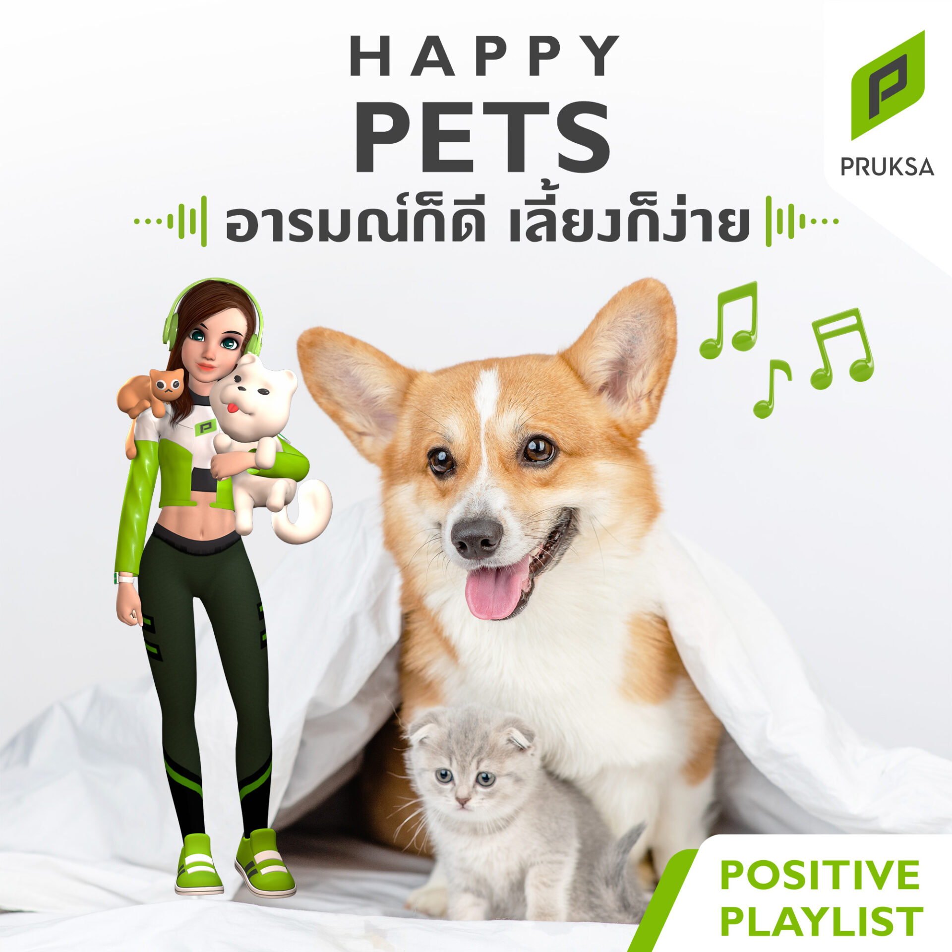 และมากกว่าการดูแลสุขภาพกาย…พฤกษายังดูแลไปถึงสุขภาพใจของน้องๆ โดยเปิดโอกาสให้ทาสหมาทาสแมว ได้ดาวน์โหลดเพลงขับกล่อมเพื่อลดความกังวล สร้างความผ่อนคลาย เพื่อให้สัตว์เลี้ยงแสนรักได้อารมณ์ดีตลอดวัน ซึ่งได้ผู้เชี่ยวชาญจากโรงพยาบาลสัตว์ทองหล่อมาช่วยออกแบบเพลย์ลิสต์ รับฟัง และดาวน์โหลดผ่าน Spotify กับ PRUKSA Positive Playlist : HAPPY PETS รับฟังและดาวน์โหลดได้ แบบไม่มีค่าใช้จ่ายด้วยได้ที่ https://www.pruksa.com/inspiring-story/unlockyourfutureliving-music ชมรายละเอียดกิจกรรม และ สิทธิประโยชน์ของสมาชิก PRUKSA Member เพิ่มเติมได้ที่ www.pruksa.com