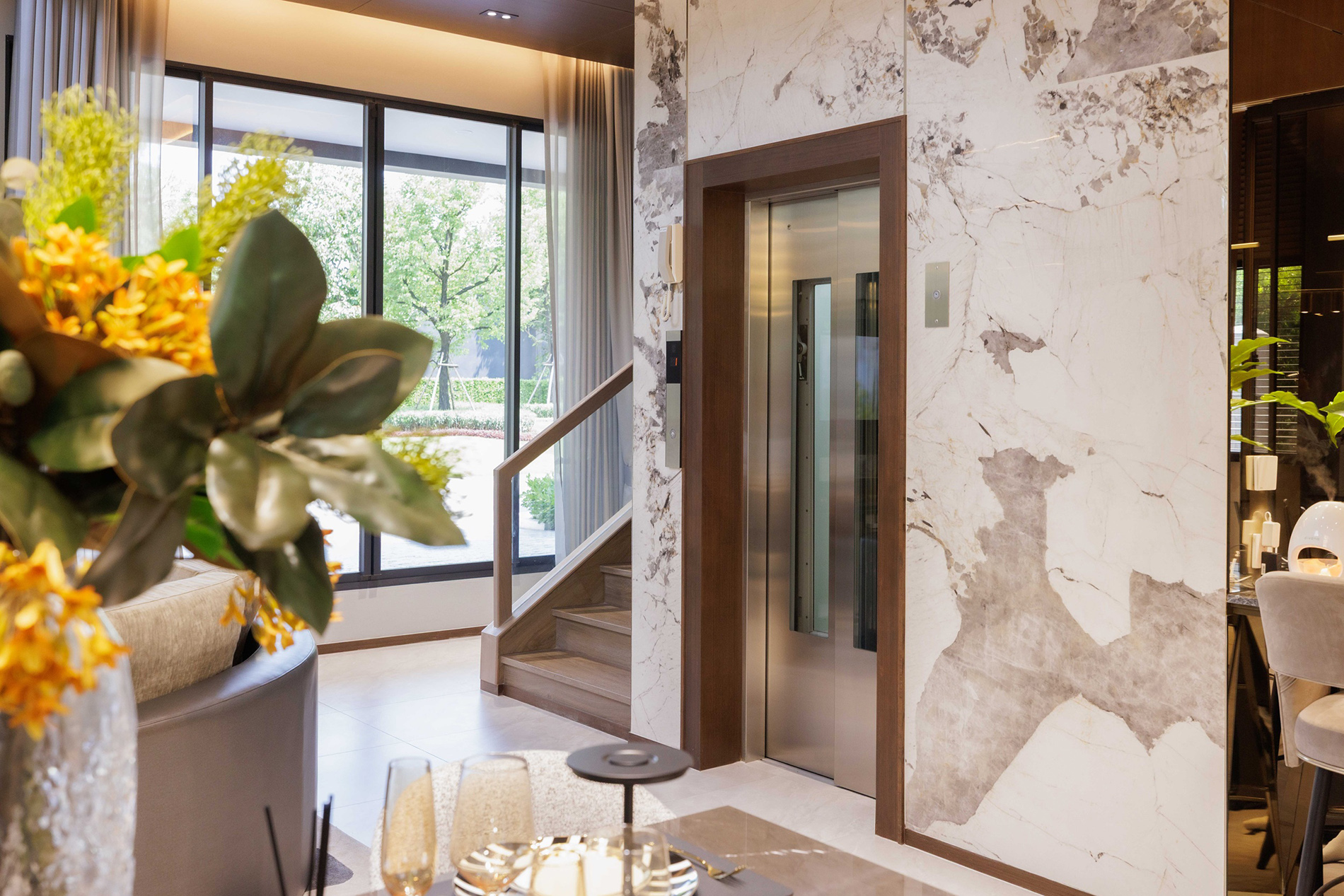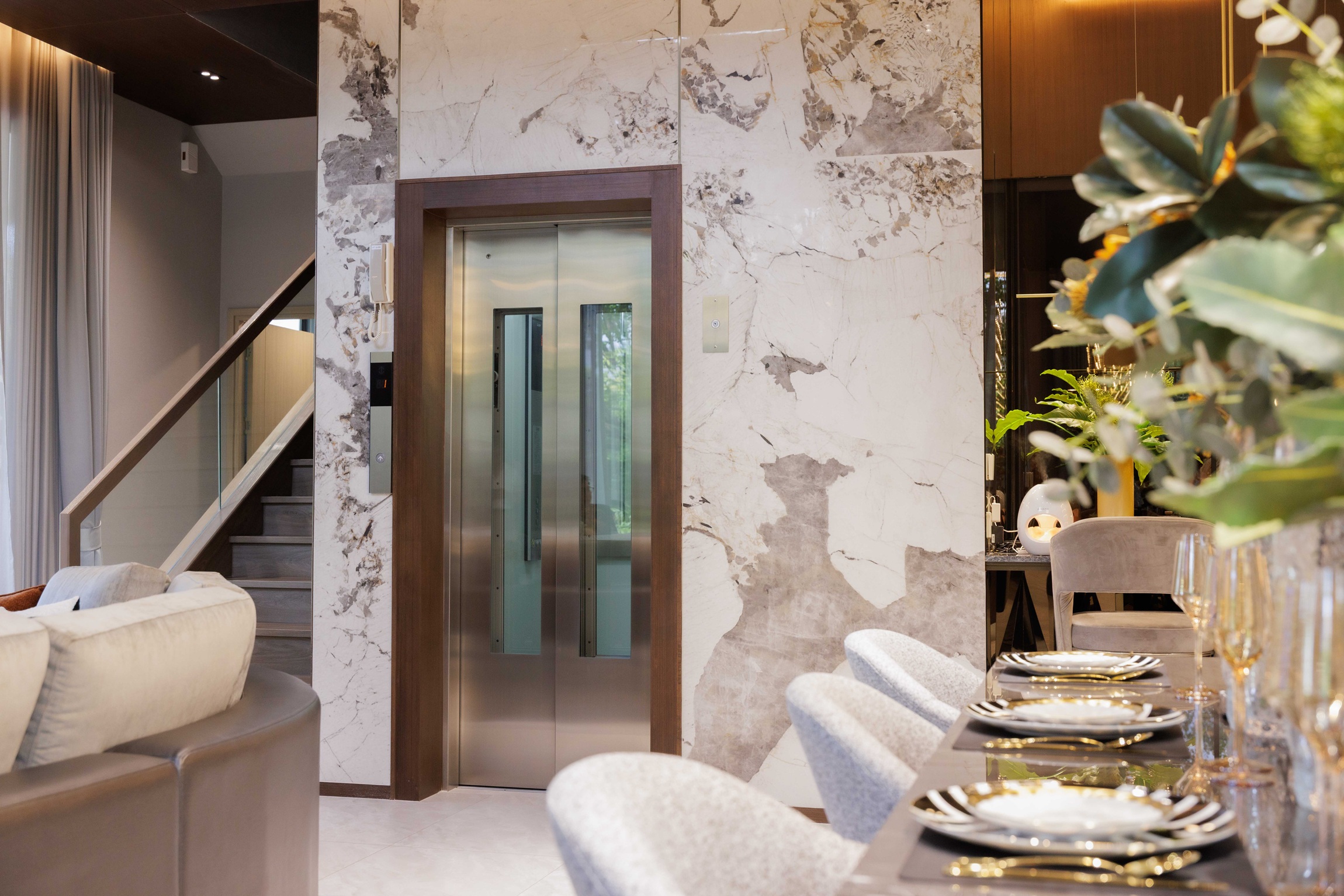 นายธีระ กล่าวเพิ่มเติมว่า การมีลิฟต์ในบ้านจะช่วยให้ทุกคนใช้ชีวิตในบ้านได้อย่างอิสระ ไม่ว่าจะอยู่ชั้นไหนของบ้าน โดยเฉพาะผู้สูงอายุหรือผู้ใช้วีลแชร์ที่ไม่ต้องอยู่แต่ในห้อง นอกจากนี้ ลิฟต์ที่เราเลือกใช้ยังมีดีไซน์ที่กลมกลืนกับบ้านเหมือนเป็นเฟอร์นิเจอร์ชิ้นหนึ่ง อีกทั้งยังได้รับการออกแบบให้ Soft landing มีระบบไฟฟ้าสำรองในกรณีระบบไฟฟ้าปกติดับ และใช้วัสดุที่ช่วยลดการสะสมของเชื้อโรค รองรับผู้โดยสารได้ถึง 6 คน หรือราว 450 กิโลกรัม เหมาะสำหรับครอบครัวใหญ่ที่ต้องการความสะดวกสบายและปลอดภัยในทุกช่วงชีวิตอย่างแท้จริง