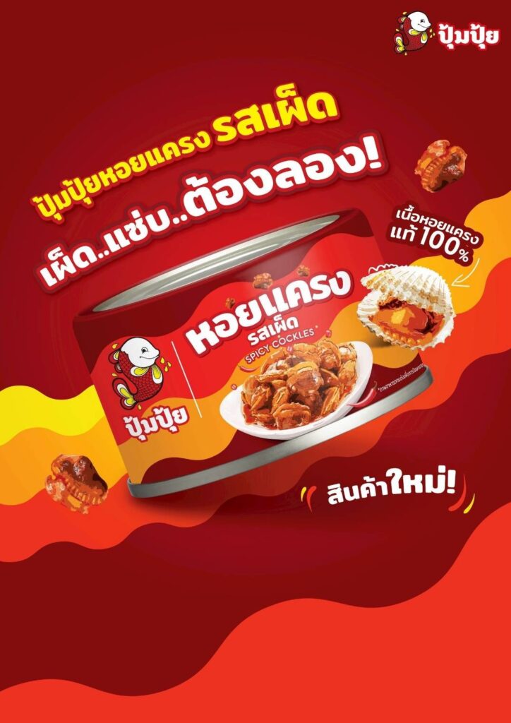7. หอยแครงปรุงรส : หนึ่งในเมนูออริจินัลของปุ้มปุ้ยที่เคยวางจำหน่ายเมื่อหลายปีก่อน และได้รับเสียงเรียกร้องจากแฟน ๆ อย่างต่อเนื่องให้นำกลับมาอีกครั้ง เราจึงหยิบสูตรเดิมมาปรับพัฒนาใหม่ให้รสชาติกลมกล่อมยิ่งขึ้น คัดสรรหอยแครงคุณภาพดี ตัวโต เนื้อแน่น หนึบ เคี้ยวเพลิน พร้อมเสิร์ฟในรูปแบบที่สะดวก แค่เปิดกระป๋องก็อร่อยได้ทันที จะทานเล่น หรือจับคู่กับเมนูไหนก็อร่อยครบเครื่อง ขนาด 40 กรัม ราคา 32 บาท