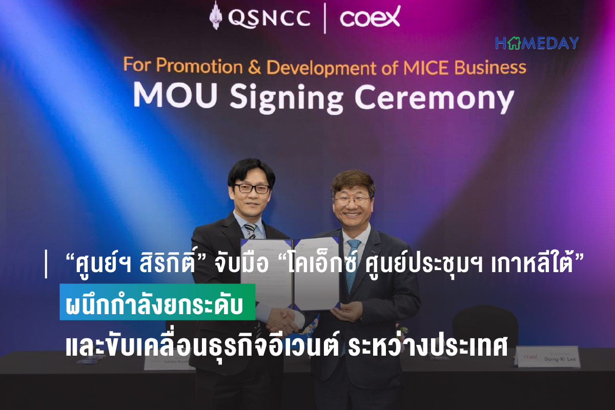 ศูนย์การประชุมแห่งชาติสิริกิติ์ และ ศูนย์การประชุมและนิทรรศการ โคเอ็กซ์ (Coex Convention & Exhibition Center หรือ Coex) จากสาธารณรัฐเกาหลี (เกาหลีใต้) ร่วมลงนามบันทึกข้อตกลงความร่วมมือ (MOU) มุ่งยกระดับและขับเคลื่อนธุรกิจอีเวนต์ระหว่าง “ไทย-เกาหลี” เพื่อแลกเปลี่ยนองค์ความรู้ ความเชี่ยวชาญ สนับสนุนกิจกรรมทางการตลาดต่างๆ ตลอดจนแลกเปลี่ยนบุคลากรเพื่อพัฒนาศักยภาพด้านการจัดงานอีเวนต์และงานประชุม