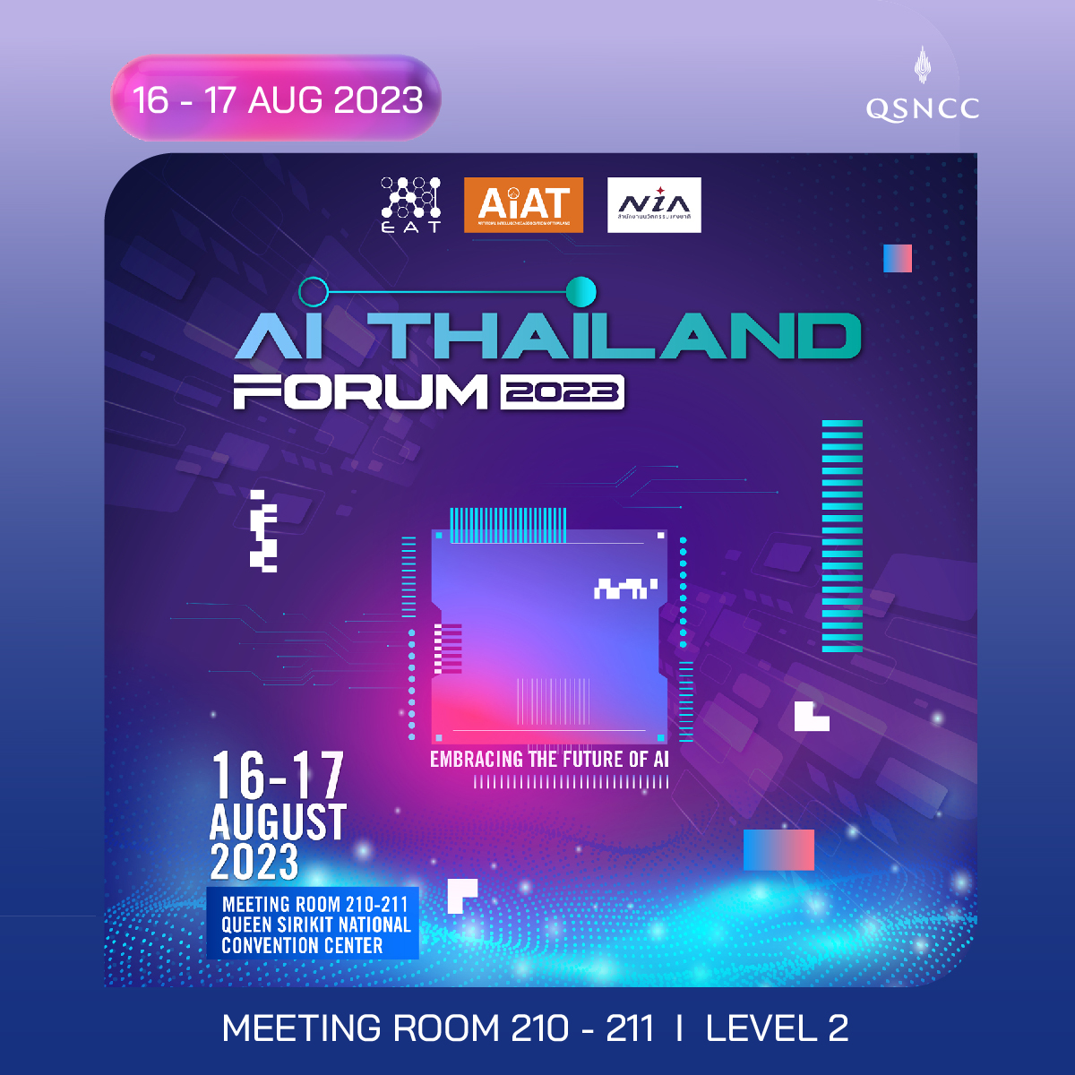 • AI Thailand Forum 2023 จัดขึ้นในวันที่ 16 – 17 สิงหาคม โดยสมาคมผู้ประกอบการปัญญาประดิษฐ์ประเทศไทย (AIEAT) และสมาคมปัญญาประดิษฐ์ประเทศไทย (AIAT) ภายใต้แนวคิด Embracing the Future of AI มุ่งส่งเสริมองค์ความรู้ ด้านปัญญาประดิษฐ์ และวางรากฐานทิศทางการพัฒนาเทคโนโลยีปัญญาประดิษฐ์ของประเทศไทย